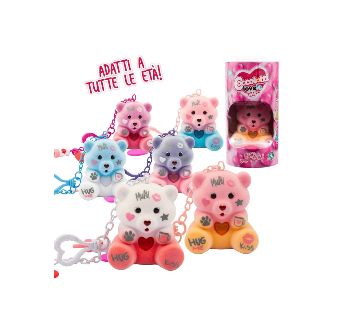 COCCOLOTTI LOVE&TELL: 1 orsetto casuale tra 6 coloratissimi modelli con loghi e scritte cool...