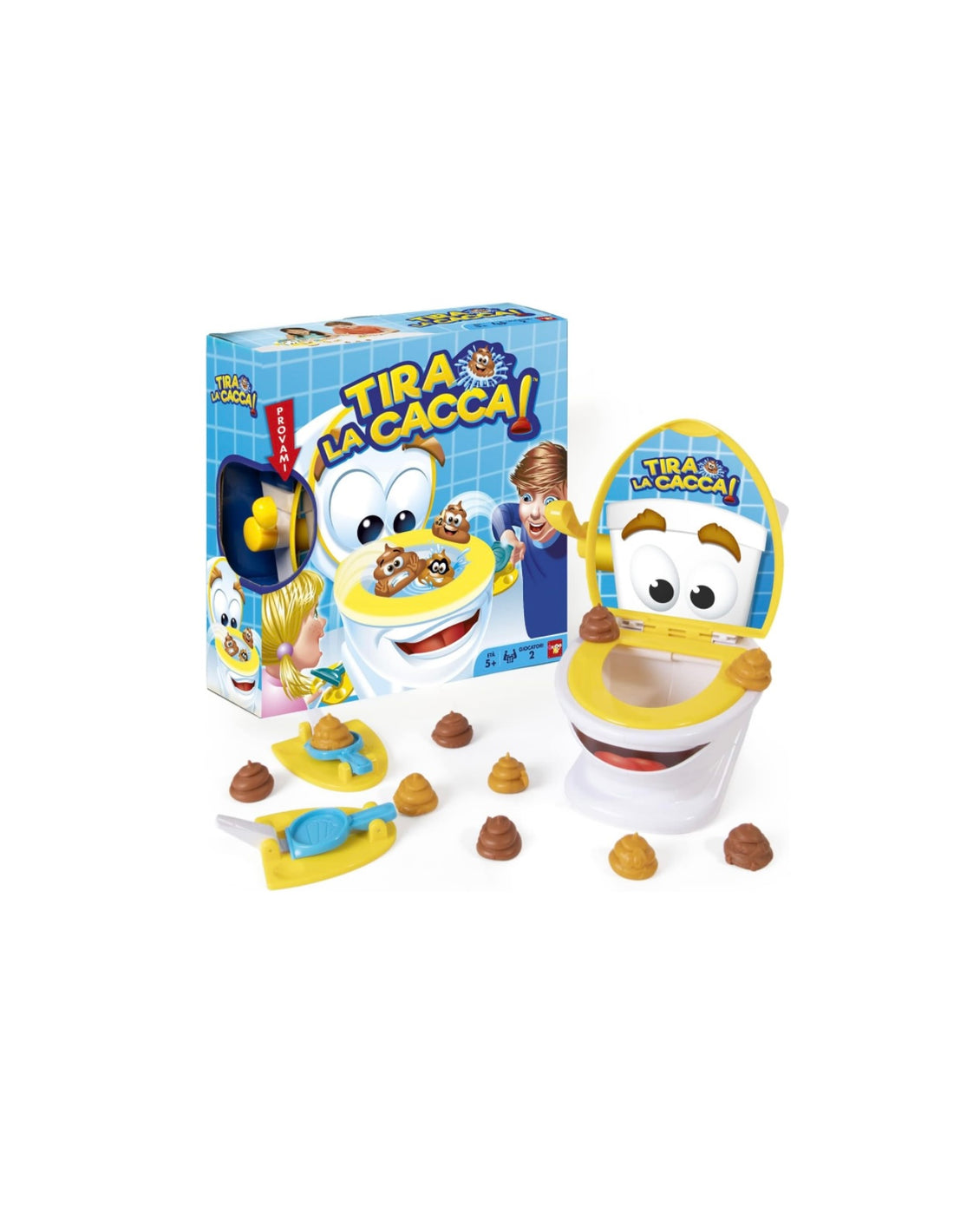 Gioco semplice, veloce e divertentissimo Usa la "Caccapulta" per fare centro nel Water 12 Cacchine...