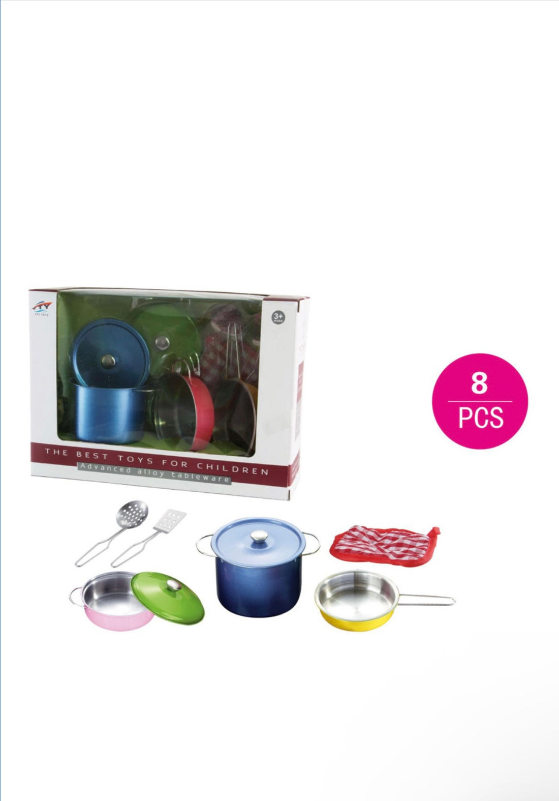 Questo realistico set di pentole e' composto da padella, casseruole con coperchio rimovibile, una paletta,...