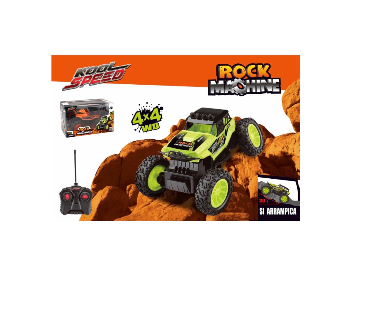 4 ruote motrici, motore ad alta velocita', super capacita' di arrampicata, trazione integrale, super ammortizzatori. Batterie non incluse. Disponibile in 2 colori
