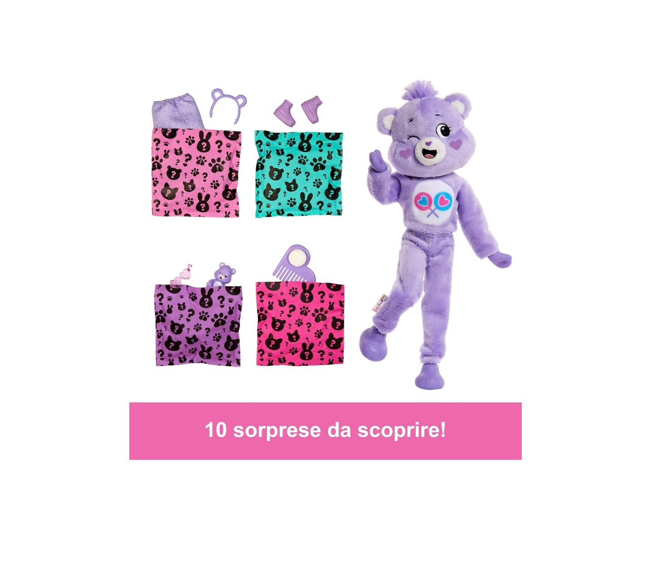 - Con 10 sorprese in 1 confezione, le bambole Barbie Cutie Reveal Care Bears offrono una fantastica esperienza quando apri la confezione, tra morbidi amici di peluche, accessori alla moda e divertenti trasformazioni!