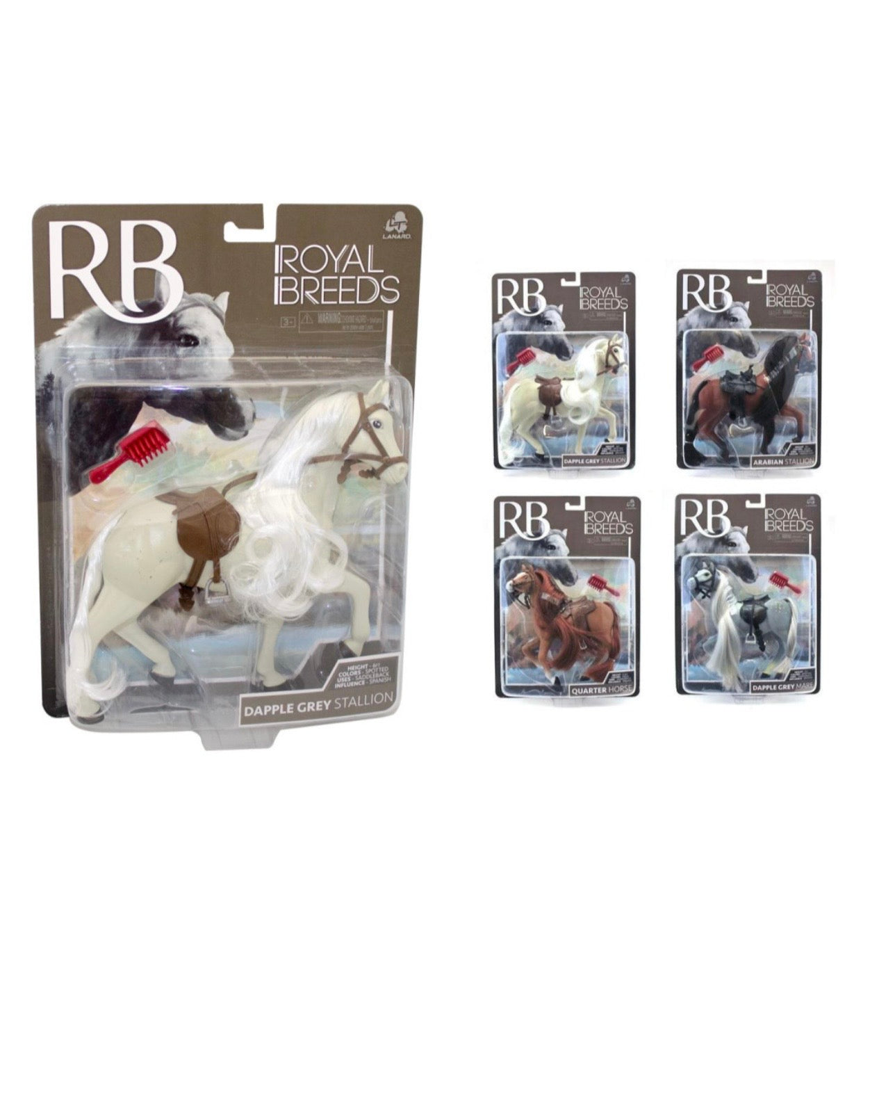 Bellissimi cavalli di razza da collezionare. Divertiti a pettinare la loro lunga criniera con la spazzola inclusa nella confezione. Disponibili quattro razze: Arabian Stallion, Dapple Grey Stallion,Dapple Grey Mare e Quarter Horse