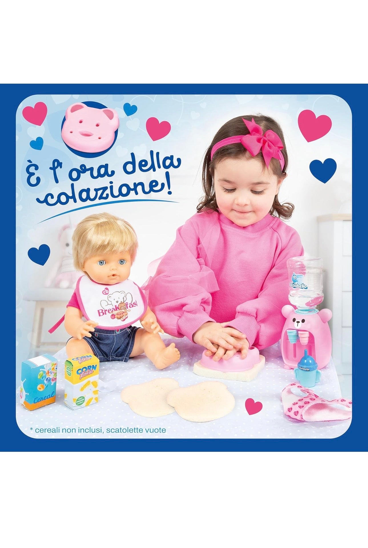- Tutto l’occorrente per una vera colazione insieme: La confezione include ciò che serve per ricreare un momento del mattino: bicchierino, coperchio con cannuccia per farlo bere, ciuccio, pannolino, stampino per il pane e due scatole di cereali giocattolo. Le scatolette sono vuote