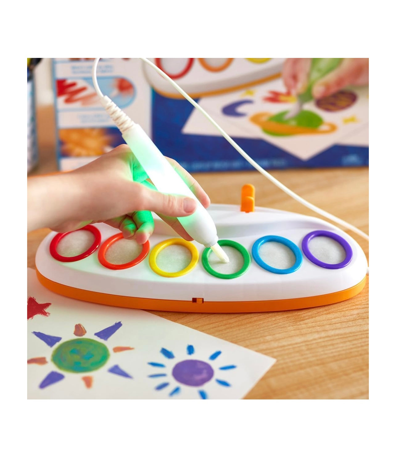 - Facile e divertente: basta intingere il pennello nel tamponcino di colore e il fusto si illumina a seconda del colore scelto; passando il pennello sulla carta, si vedrà il colore apparire magicamente; l'unità ha un design compatto e portatile ed è richiudibile con l'apposito coperchio per evitare che il colore si secchi