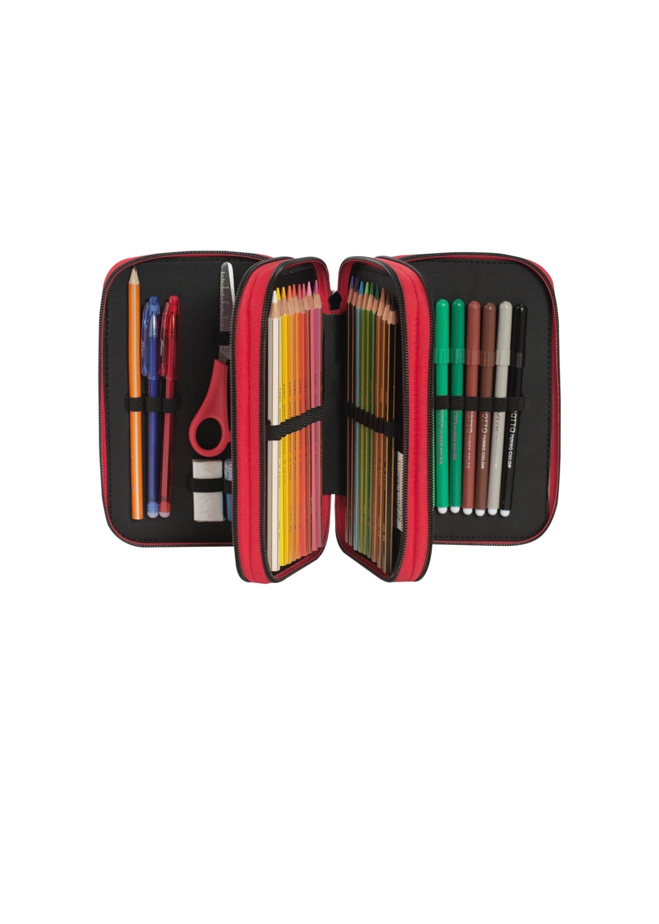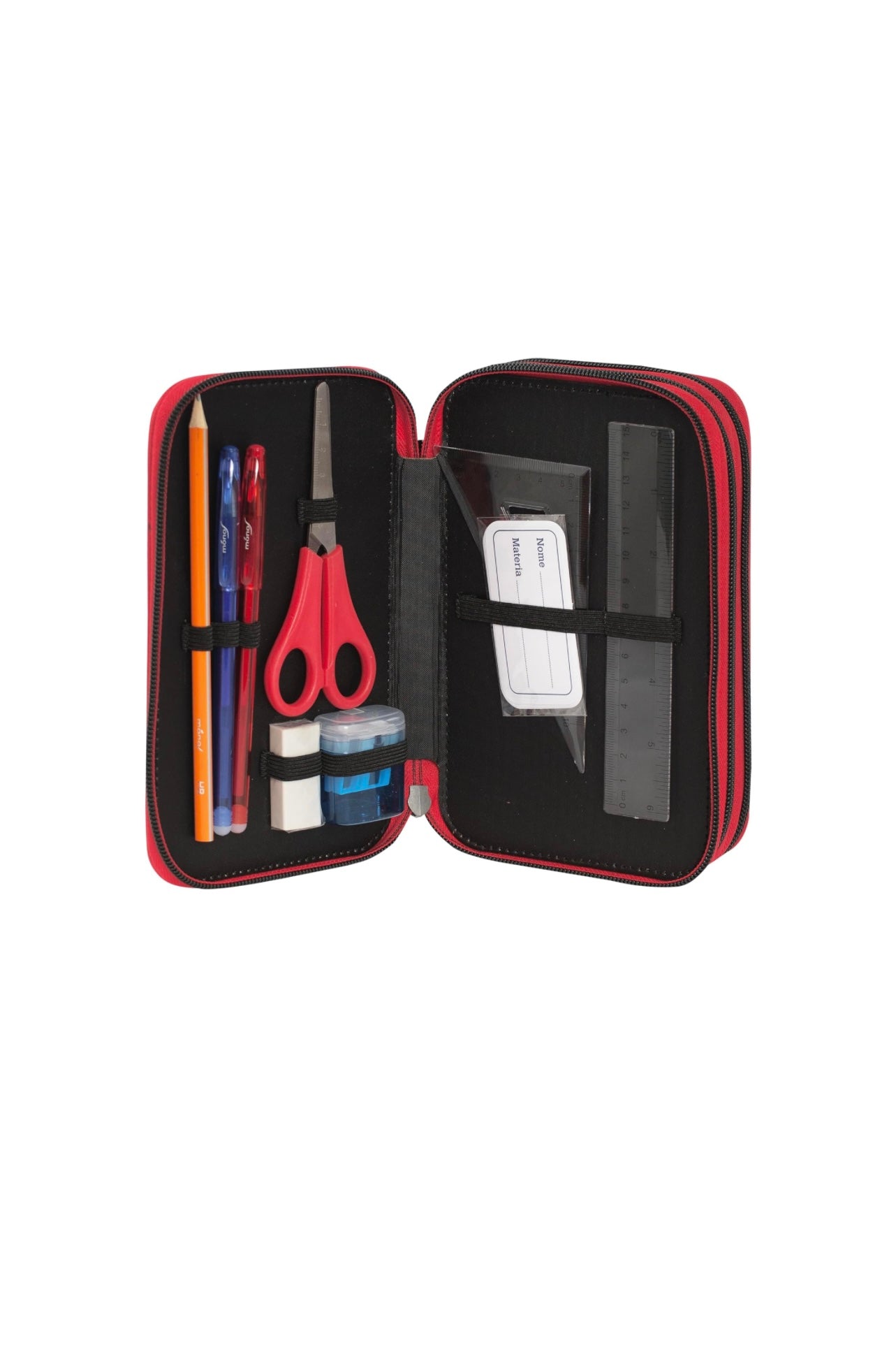 - AMPIO E COMPLETO: L'astuccio è ampio ed è completo di tutta la cancelleria necessaria per la scuola. Include 18 pennarelli, 18 matite colorate, matita, gomma, penna cancellabile blu Frixion, penna rossa, righello, temperino con serbatoio, forbici con punta arrotondata, squadra ed etichette portanome