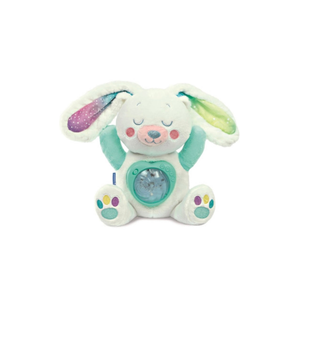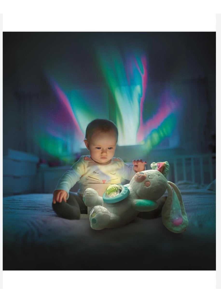 Un morbidissimo Lepre Artica che proietta l'aurora boreale. Perfetta compagna di viaggio per i bambini nel mondo dei sogni. La proiezione dell'aurora boreale ha ben 10 colori diversi e, creando un ambiente magico, aiuta a rilassare il bambino. La Lepre riproduce suoni bianchi e melodie appositamente studiate per calmare i bambino. Favorendo la transizione autonoma del bambino dalla veglia al sonno.