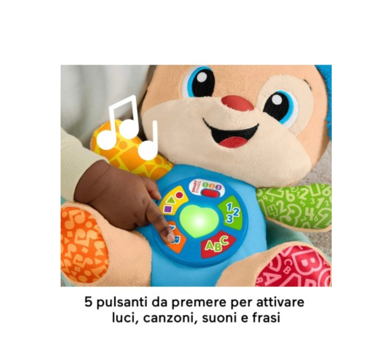 - Peluche musicale per l'apprendimento che introduce il bambino alle prime parole con luci e oltre 80 canzoni, suoni e frasi