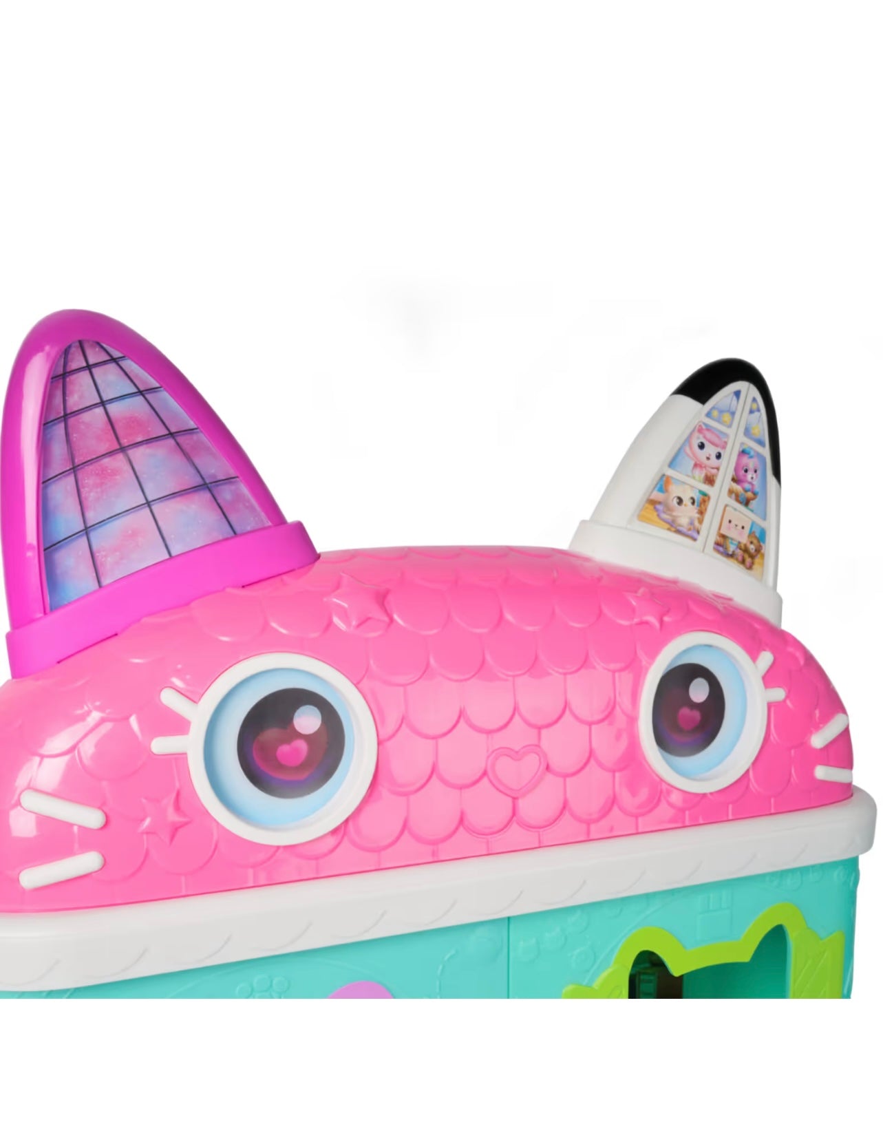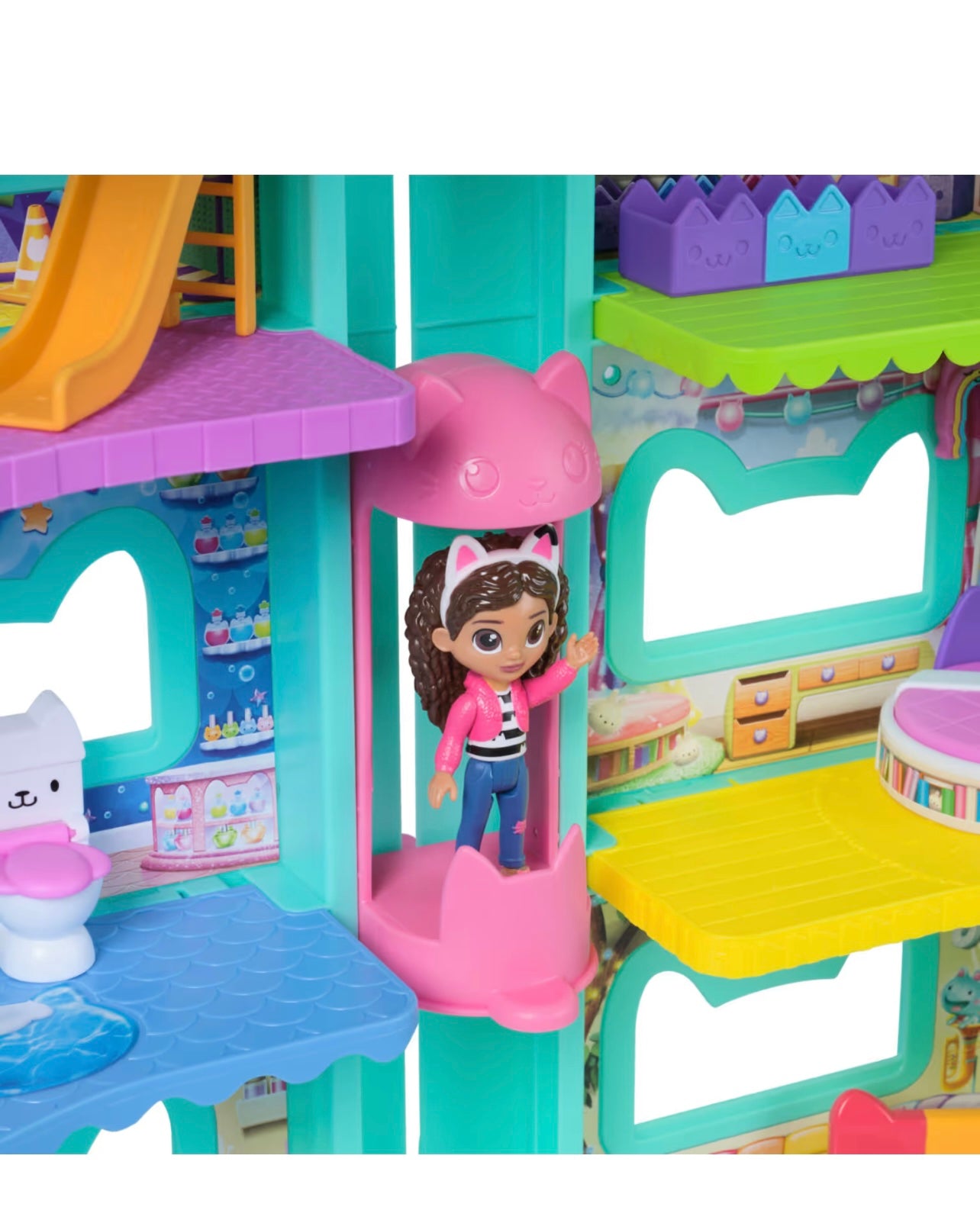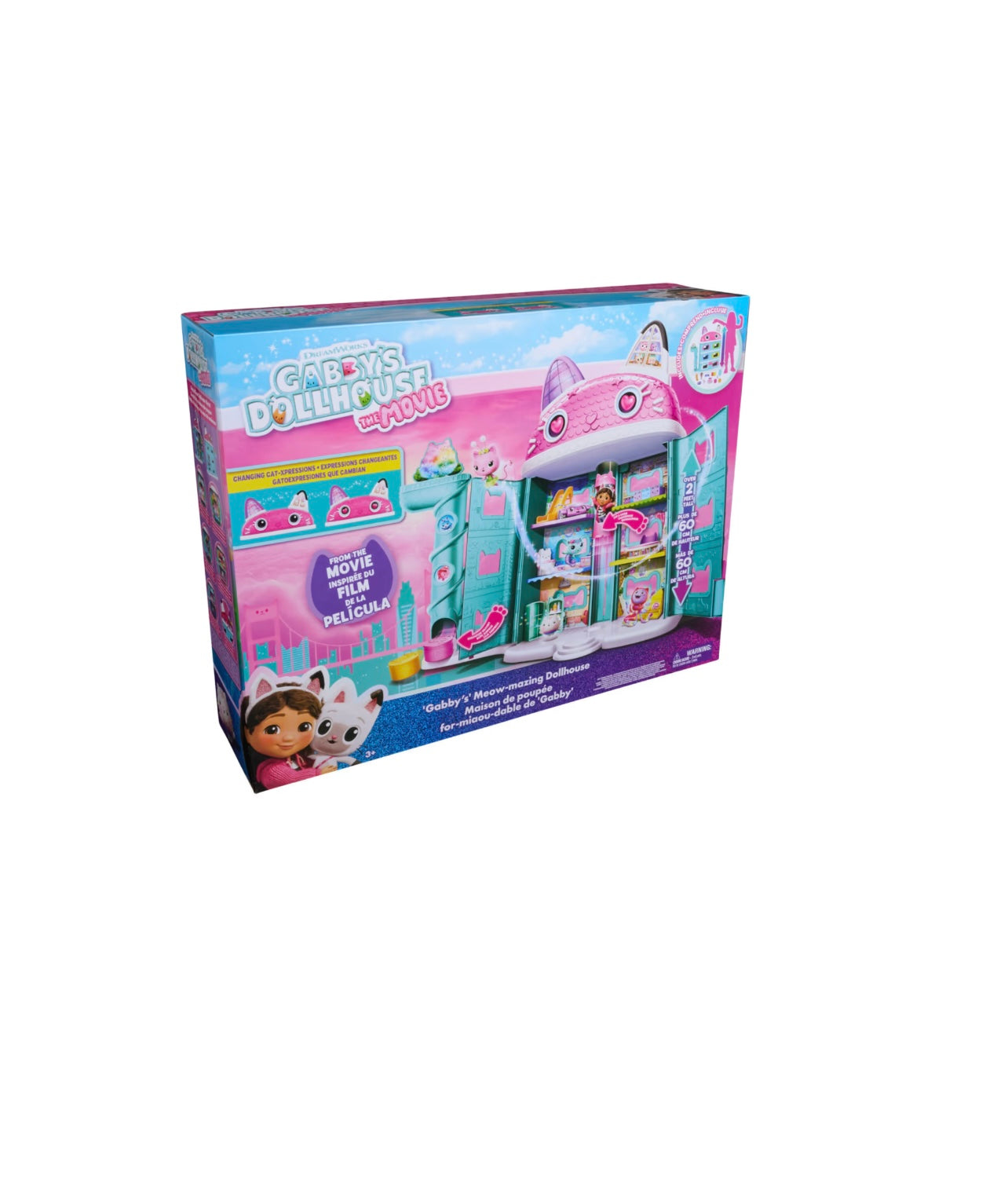 La casa delle bambole ufficiale del film di Gabby Vivi le emozioni di Gabby's Dollhouse: The Movie con la nuova Meow-Mazing Dollhouse, alta oltre 60 cm, con occhi lenticolari animati e stanze piene di sorprese per un gioco magico e interattivo.7 ambienti e 1 stanza delle feste Scopri 6 stanze gattastiche e una sala party all'ultimo piano. Esplora ogni livello usando il simpatico Cat-ascensore e ricrea le scene del film con un'esperienza immersiva e divertente. Mini personaggio Gabby incluso Il set contiene una mini figura di Gabby in versione esclusiva Movie, con la sua fascia orecchie da gattina, pronta per tante avventure nella sua fantastica casa delle bambole. Accessori e sorprese da scoprire Troverai 7 mobili, 5 accessori e 2 fogli di adesivi per personalizzare ogni stanza. Inoltre, apri le consegne misteriose e scansiona il QR code per contenuti digitali interattivi nell'app ufficiale. Compatibile con tutta la linea Gabby's Dollhouse Espandi il divertimento con stanze e balconi aggiuntivi (venduti separatamente). Tutto si integra perfettamente per creare un mondo di gioco ancora piu' grande. Gioco educativo e interattivo 3+ anni Stimola immaginazione, motricita' fine e gioco simbolico. Ideale dai 3 anni in su, per un divertimento sicuro e coinvolgente, sia da soli che in compagnia. Con effetti sonori e valigetta richiudibile L'esperienza e' completa con effetti sonori integrati e una struttura compatta e richiudibile. Portala ovunque e gioca dove vuoi!