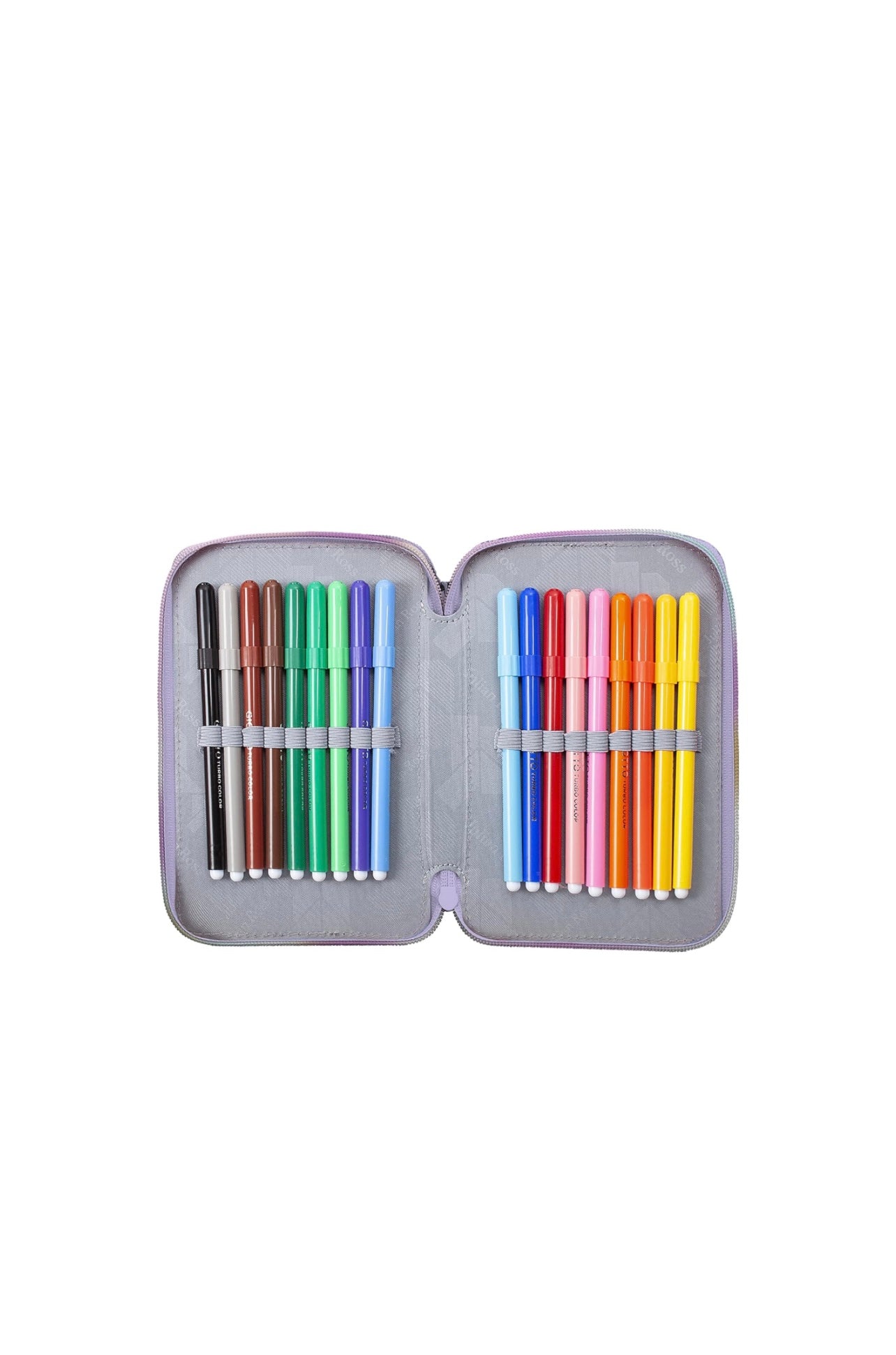 - Contenuto astuccio: triplo scomparto, 1 penna a sfera blu, 1 penna a sfera rossa, 2 matite, 1 gomma, 1 temperino, 1 righello, 1 forbicine, 1 colla stick, 18 pastelli Julian Ross Mina+ 3.80mm, 18 pennarelli Giotto.