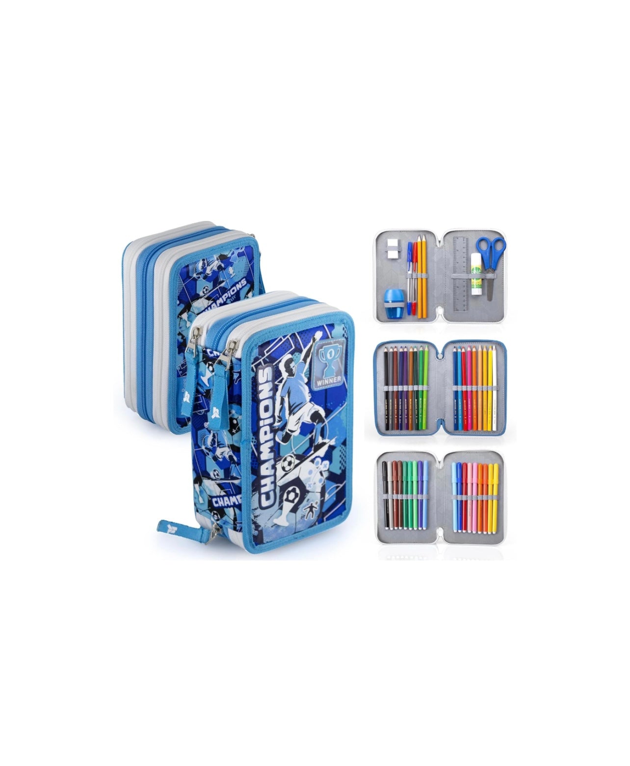 Julian Ross- Schoolpack zaino champions azzurro + astuccio 3 zip completo + omaggio orologio digitale led