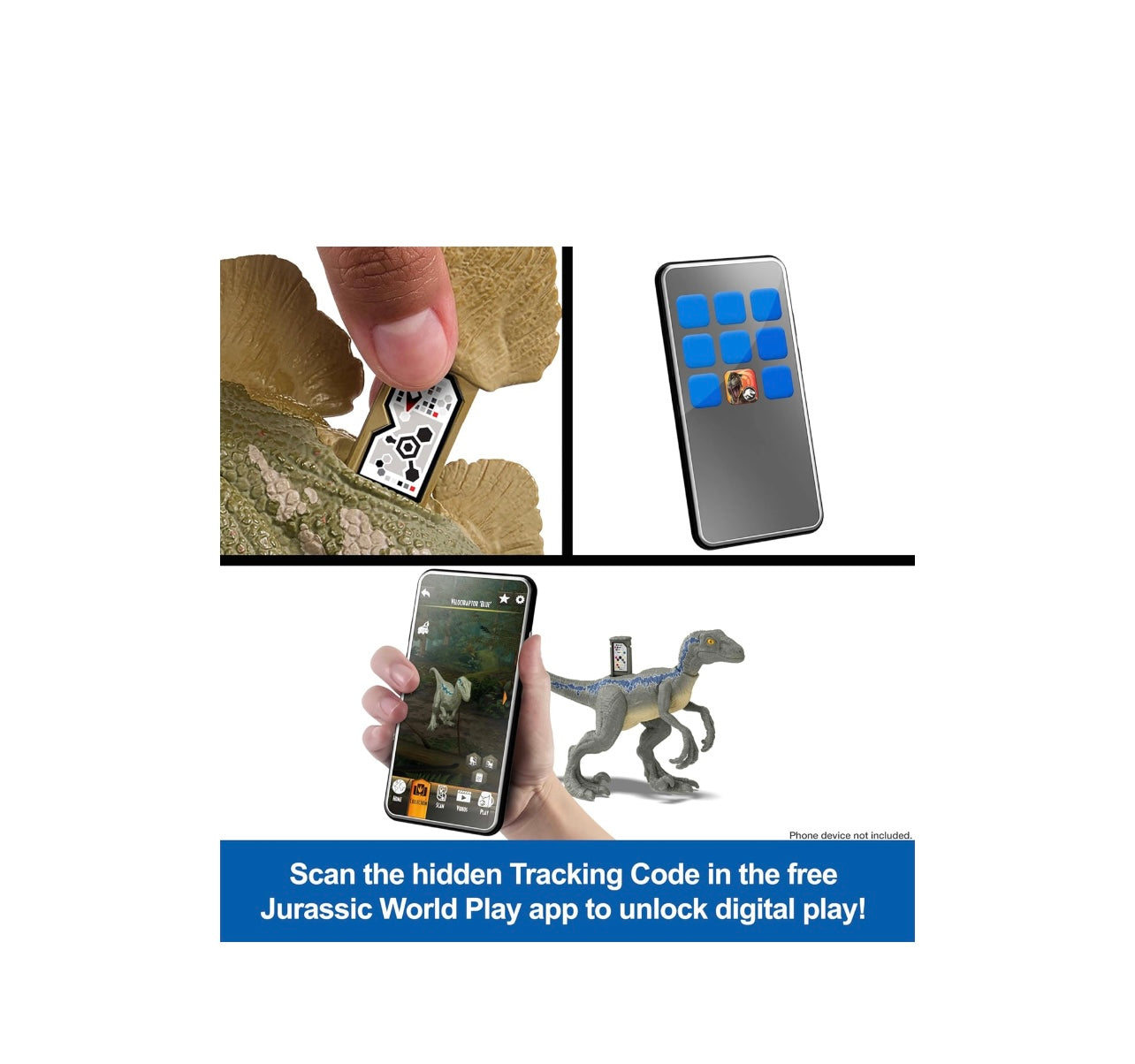 - Scopri e costruisci Scansiona il codice di tracciamento nascosto del dinosauro nell'app gratuita Jurassic World Play con un dispositivo intelligente compatibile (non incluso) per attività AR e per creare una collezione digitale di dinosauri