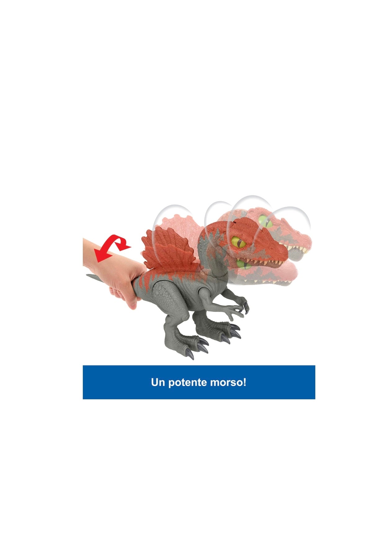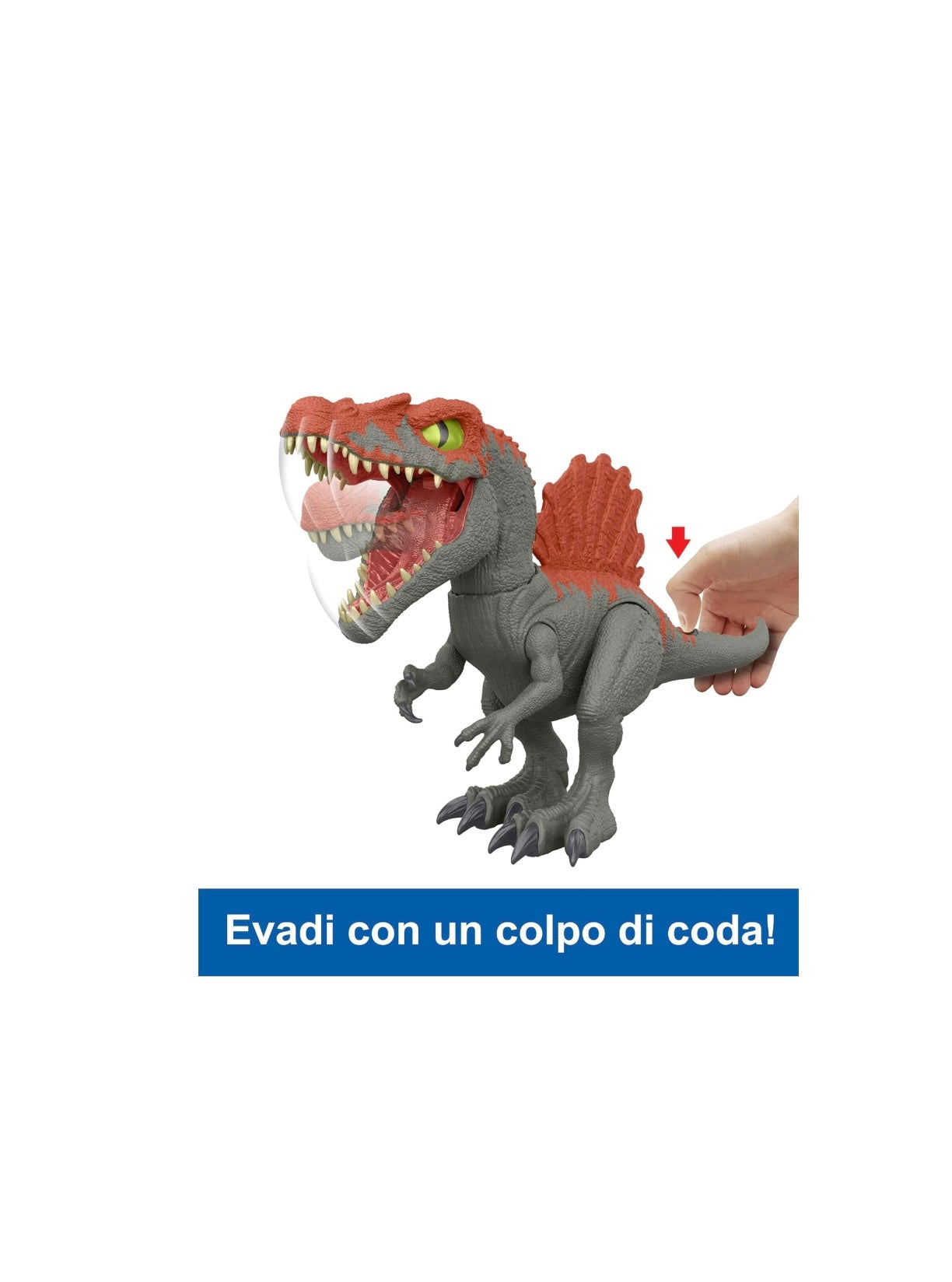 - EVASIONE! Muovi la coda dello spettacolare Spinosauro da un lato all'altro per aiutarlo a evadere con la sua azione distruttiva. Premi il tasto sulla parte superiore per sferrare un morso aggressivo!