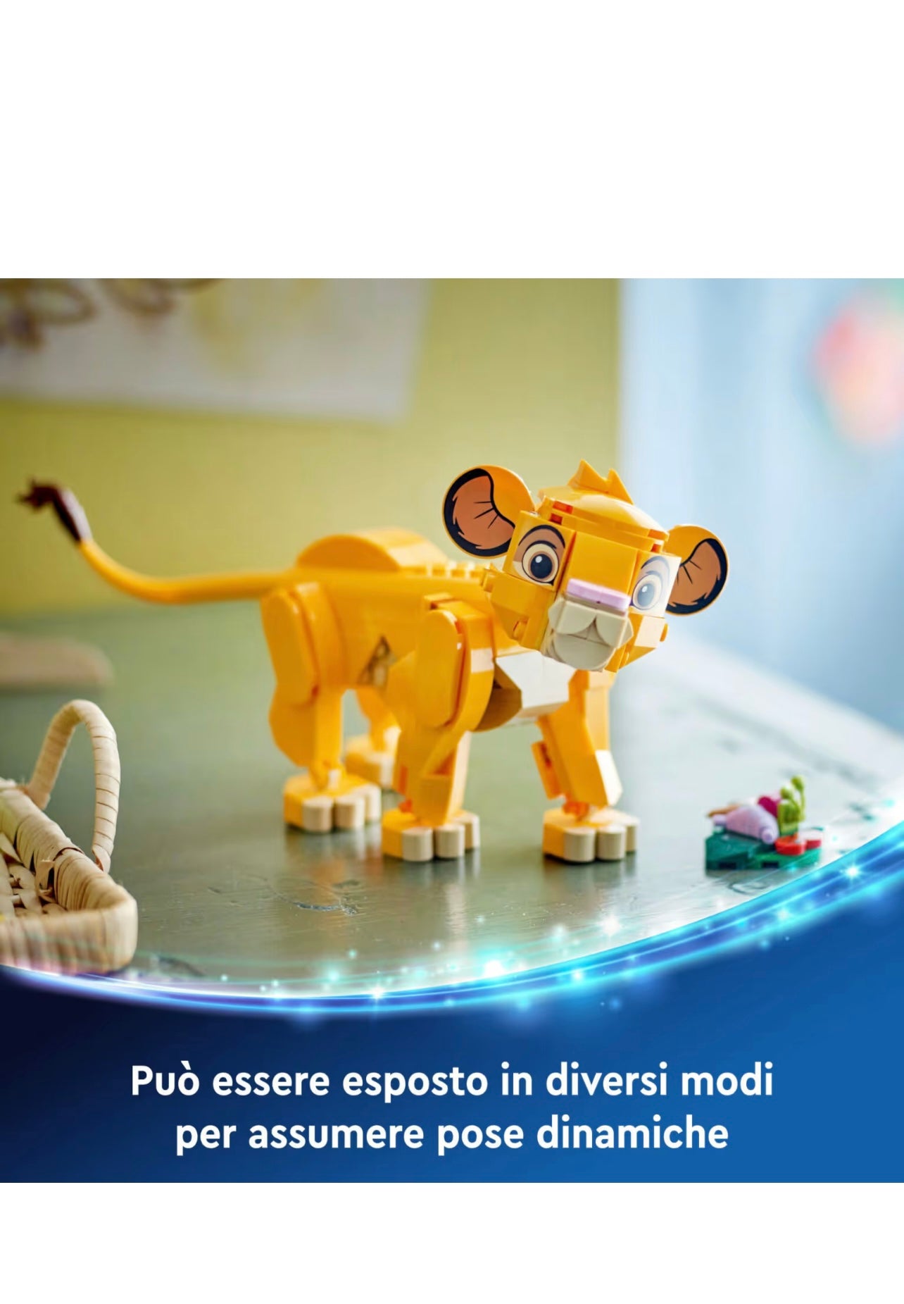 DETTAGLI PRODOTTO Set di giochi di fantasia per bambini e bambine da 6 anni: regala ai fan del famoso film d'animazione il personaggio di Simba, il Cucciolo del Re Leone LEGO | Disney da costruire, ottimo per il gioco e per l’esposizioneFesteggia il trentesimo anniversario del film d'animazione Il Re Leone Disney: il set contiene il modello snodabile di Simba giocattolo oltre ad una piccola foglia da costruire con 4 “insetti. Gioco del Re Leone LEGO | Disney con parti mobili: il personaggio giocattolo di Simba è dotato di testa girevole, gambe e coda mobili e può essere posizionato sia in piedi sia seduto