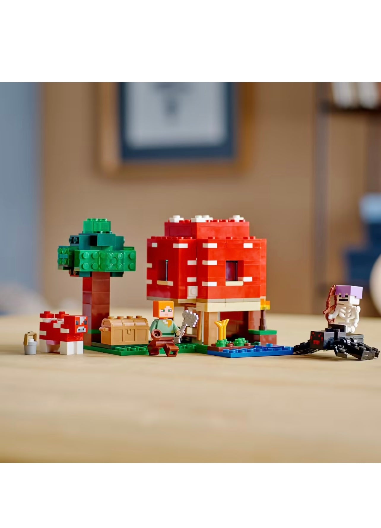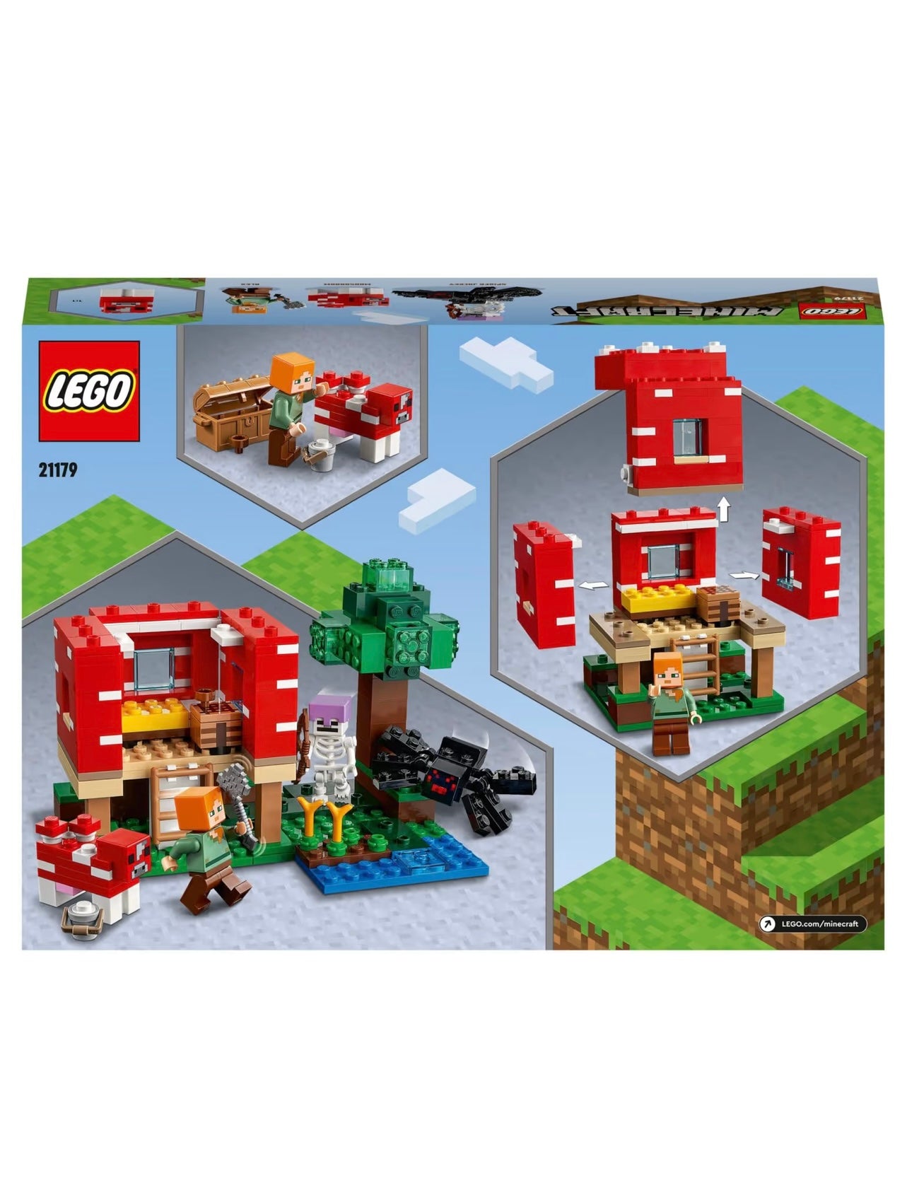 Questo set per bimbi dagli 8 anni in su include una casa a forma di fungo che si apre per rivelare il tavolo da lavoro e gli arredi all'internoAll'esterno, un fungo mucca da mungere, un forziere da scoprire e uno scheletro cavalcatore di ragni da sconfiggereIl set comprende personaggi iconici di Minecraft, come Alex, il fungo mucca e lo scheletro cavalcatore di ragni