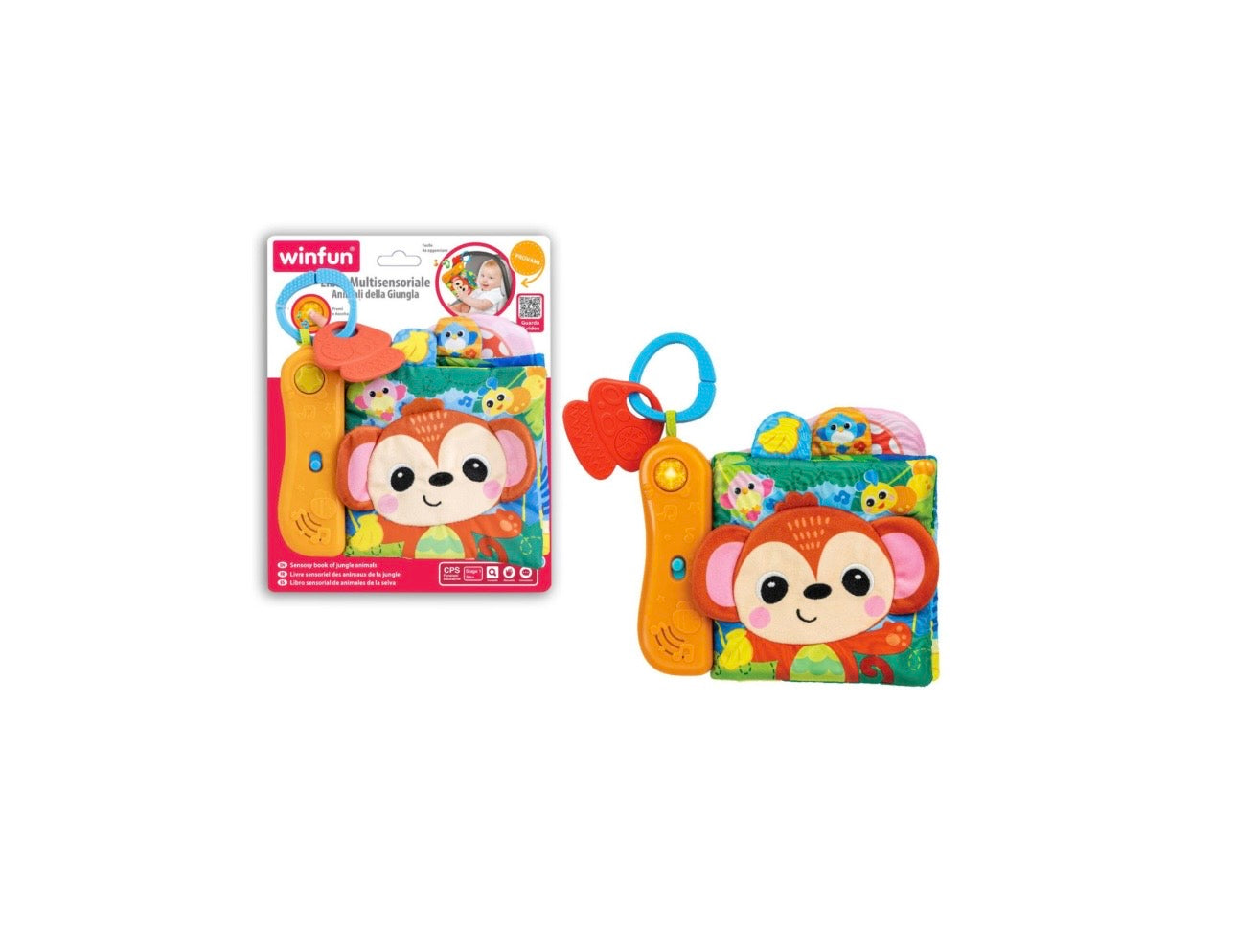 Avviciniamo alla lettura i bambini sin da piccoli, attraverso la conoscenza dei primi libri tattili. Il formato di stoffa rendono i libri adatti ai piu' piccini sin dai primi mesi di vita; divertiti con il tuo piccolo ad inventare storie fantasiose ed attraverso le sue piccole manine scoprira' nuovi materiali ed oltre allo sviluppo sensoriale attivera' anche la sua immaginazione e stimolazione visiva. Musica divertente libro sensoriale morbido con massaggiagengive strutturato. Pagina peekaboo increspata, specchio sicuro per bambini e squeaker.Premi il pulsante luminoso/uccellino/banana per effetti sonori e melodie. Il facile attacco ad anello si collega al passeggino, alla culla o al seggiolino per auto per un divertimento da portare sempre con se'.