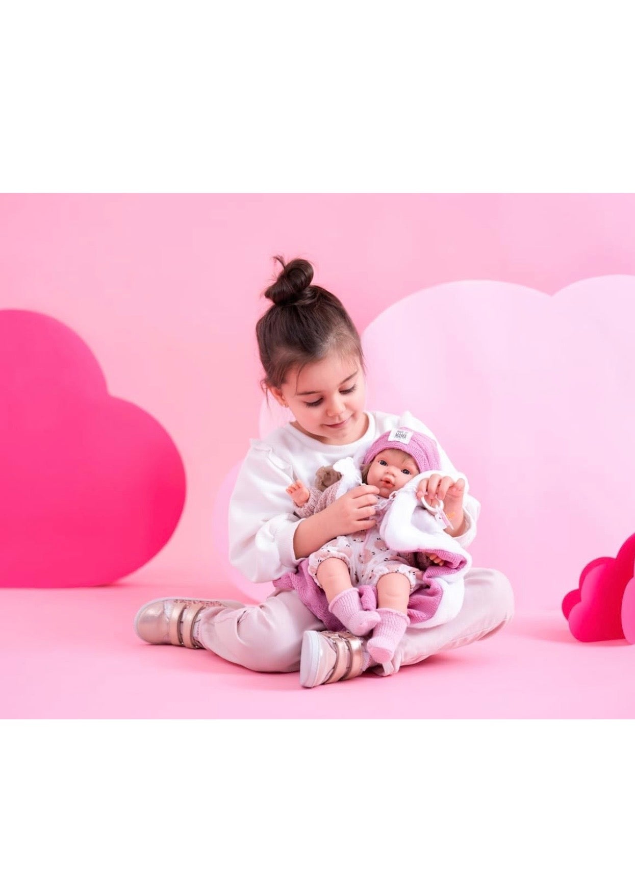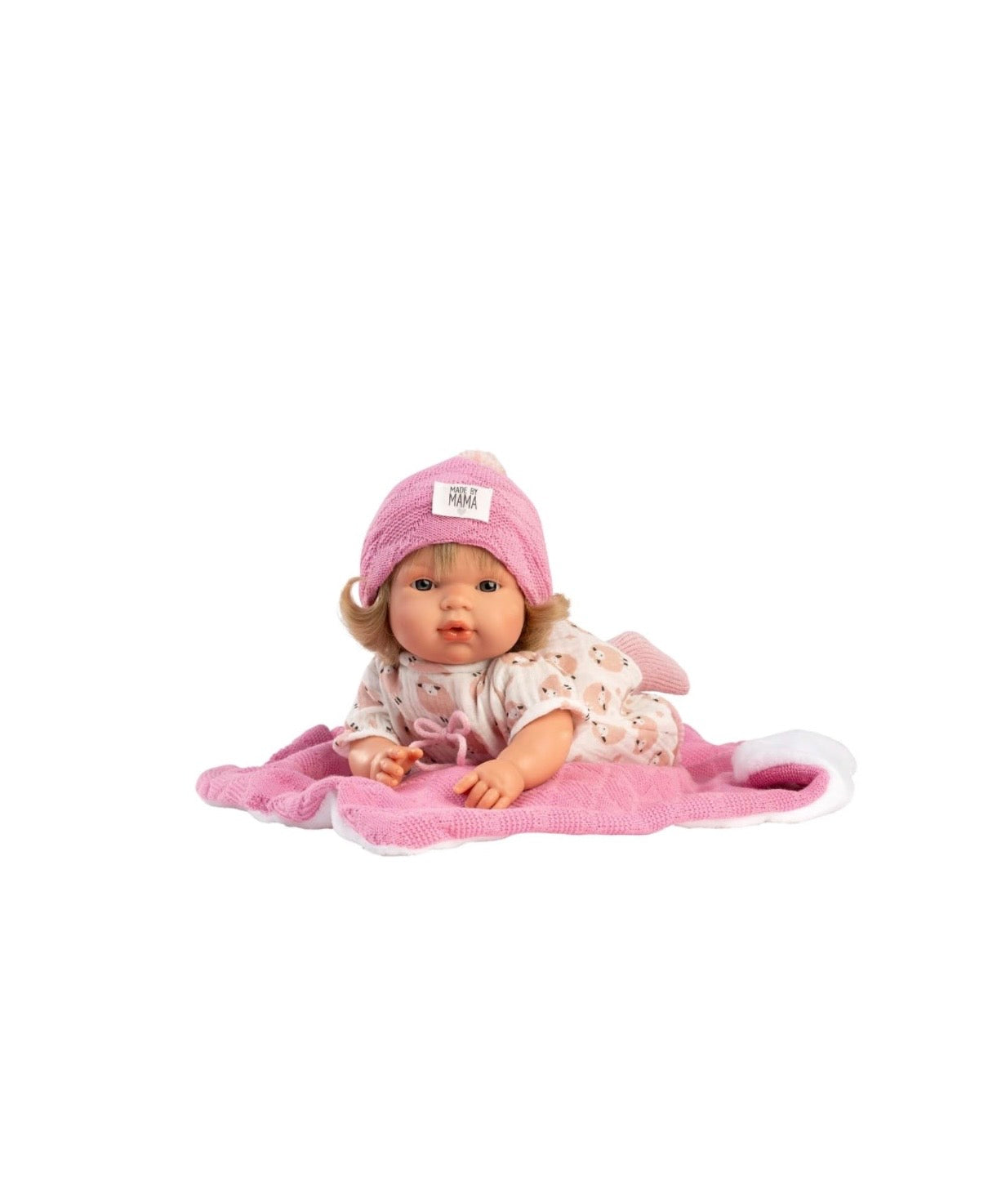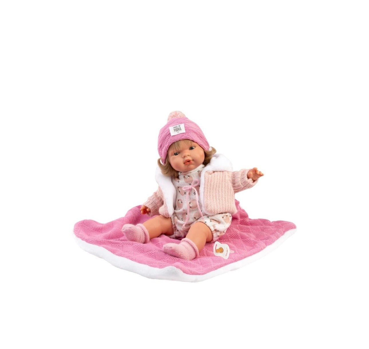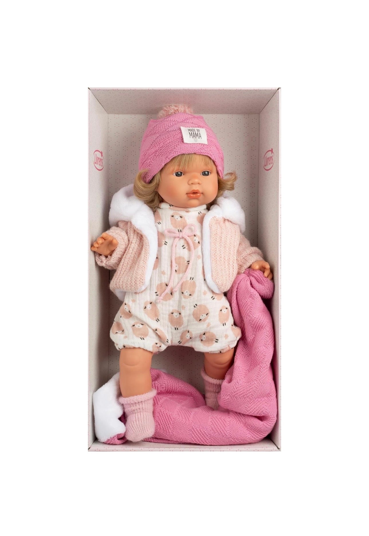 Le iconiche bambole Llorens, sono 100% fatte a mano. Lola e' una bambina che va ovunque con la sua coperta e il suo cappellino. Il suo corpo e' morbido e i suoi arti sono di vinile.