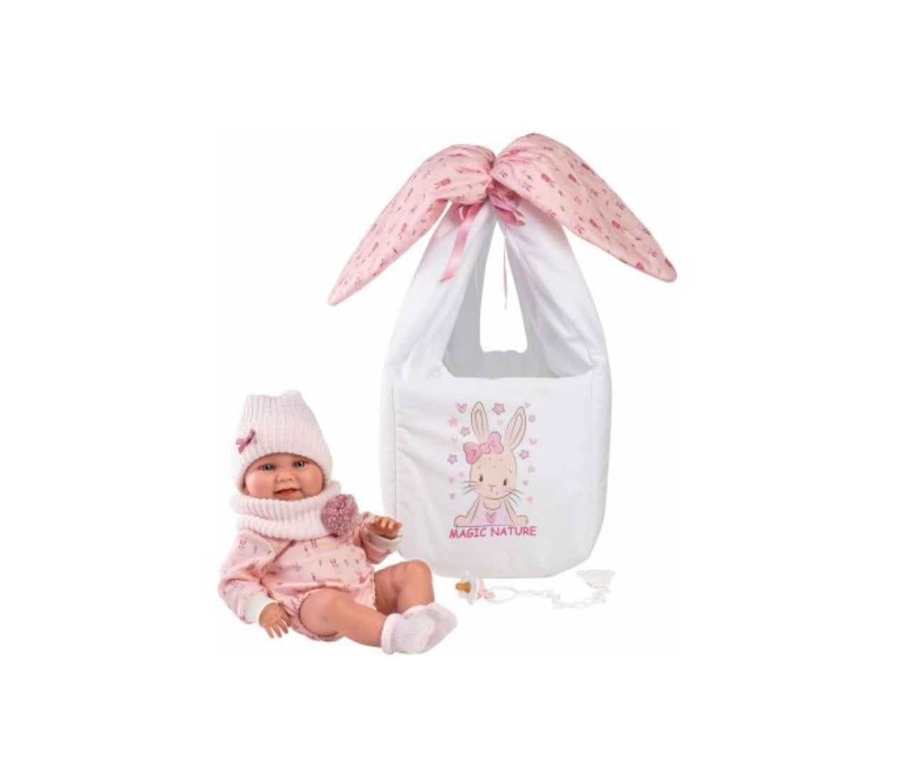 BAMBOLA NICA 40 CM. ARTICOLATA CON PORTABEBE' SACCO