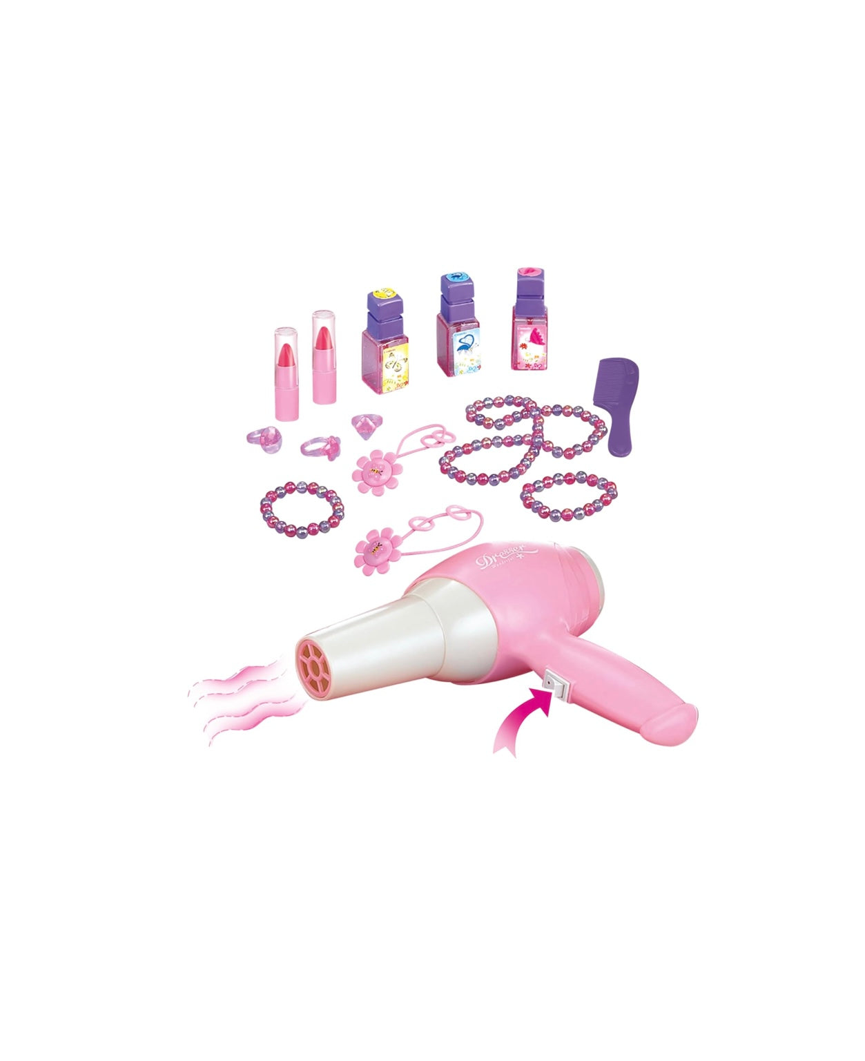 - SET COMPLETO: Con la trousse make up, gli accessori per lo styling e l'asciugacapelli funzionante a batterie (non incluse), ci si può divertire con un gioco di ruolo completo, simulando il trucco e l'acconciatura.