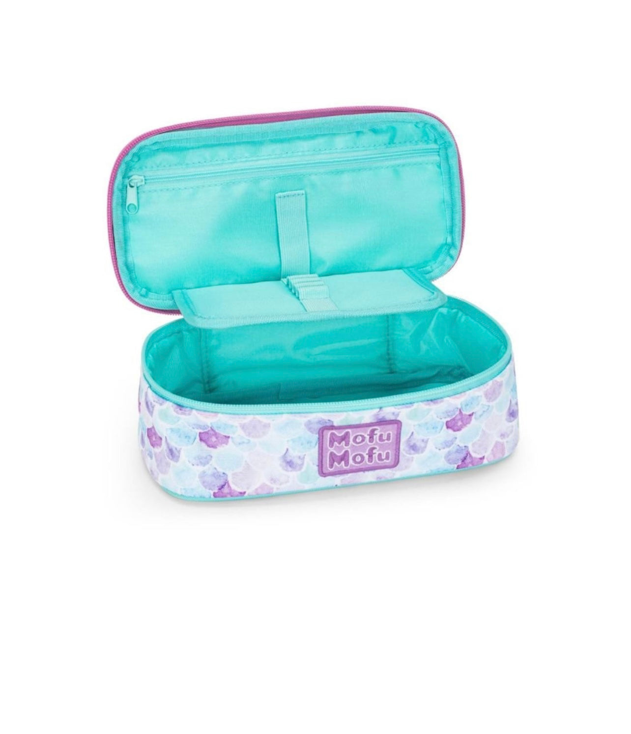 L'astuccio ovale personalizzato Mofu Mofu è ideale per accompagnare bambine e bambini durante l'anno scolastico. Grazie alle dimensioni di 22 x 7,5 x 11 cm, alla tasca interna e al divisorio con passanti elastici su entrambi i lati, permette di contenere e organizzare in modo ottimale penne, matite, gomme e altro ancora. Preparati ad esprimere la tua creatività in modo organizzato e divertente!Materiale: Esterno 100% poliestere,Fodera 100% poliestere