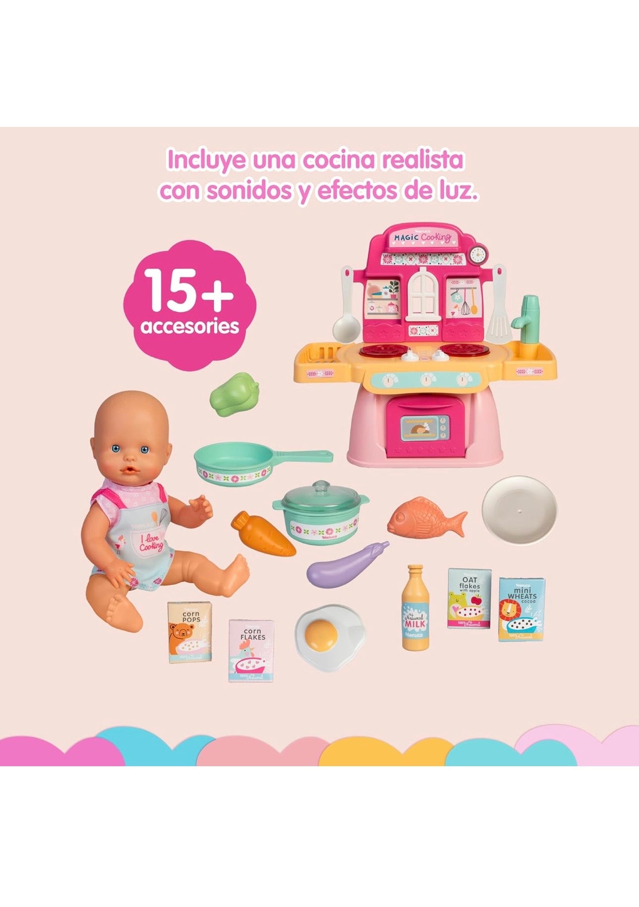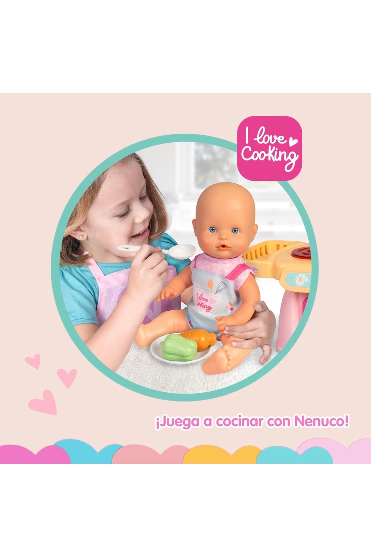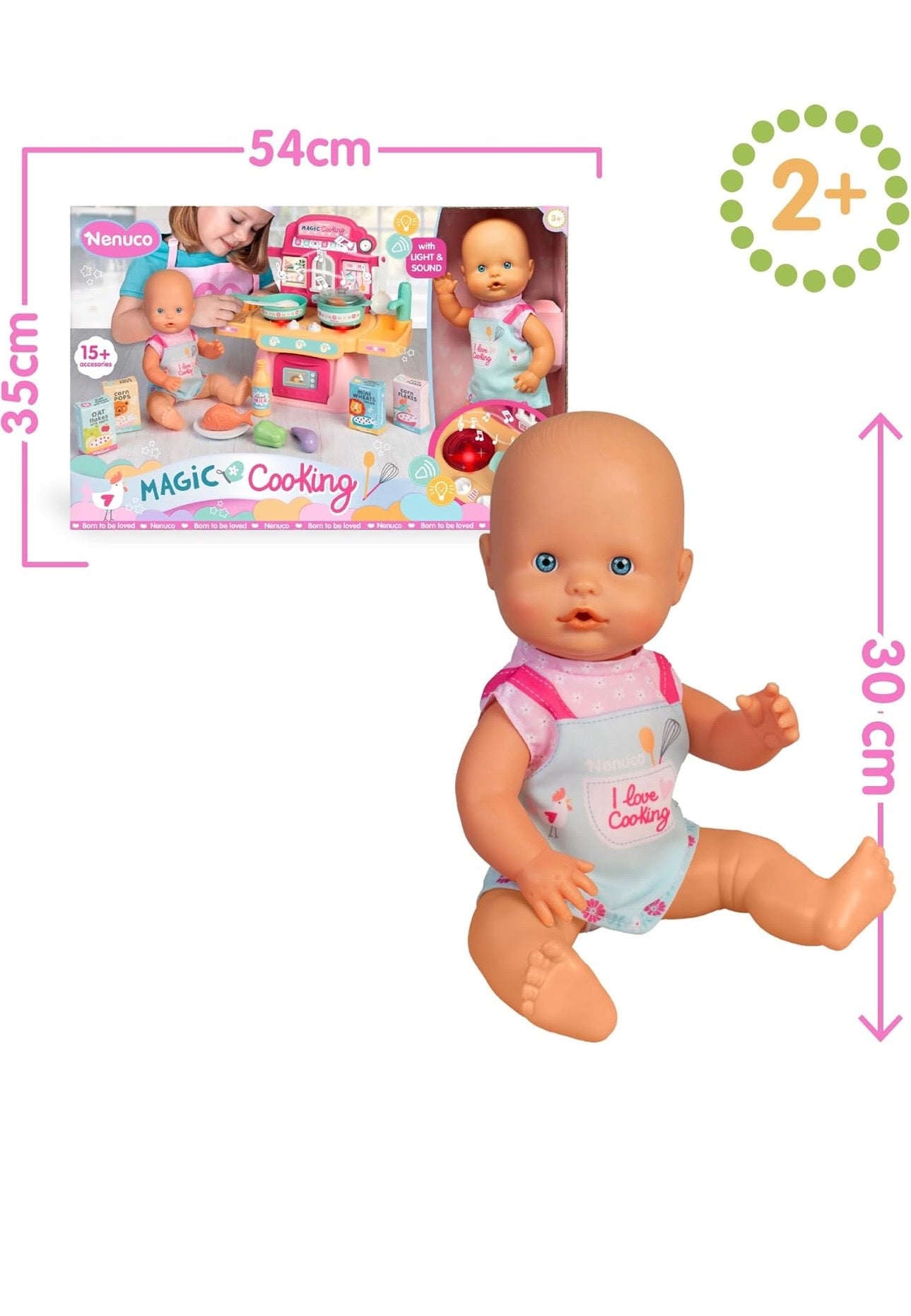 - Bambola Nenuco da 30 cm con corpo rigido e un set da cucina super completo per preparare deliziose ricette. Include padella, casseruola, piattino, utensili e ingredienti per trasformare i più piccoli in veri chef mentre giocano.