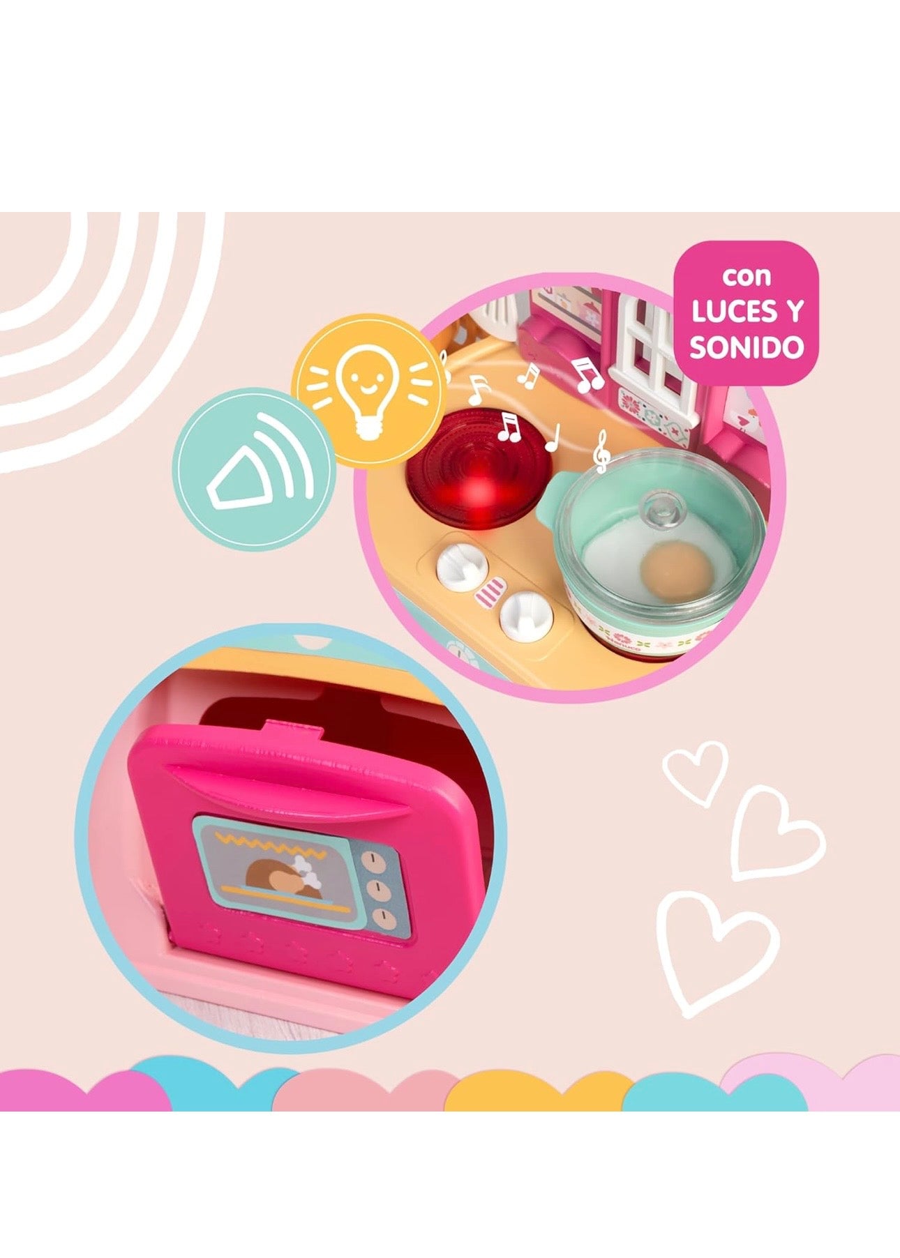 - La cucinetta è dotata di luci e suoni realistici che riproducono il bollire e il friggere, rendendo l'esperienza molto più coinvolgente e consentendo ai bambini di ricreare situazioni di cucina autentiche, stimolare i sensi e arricchire il gioco simbolico.