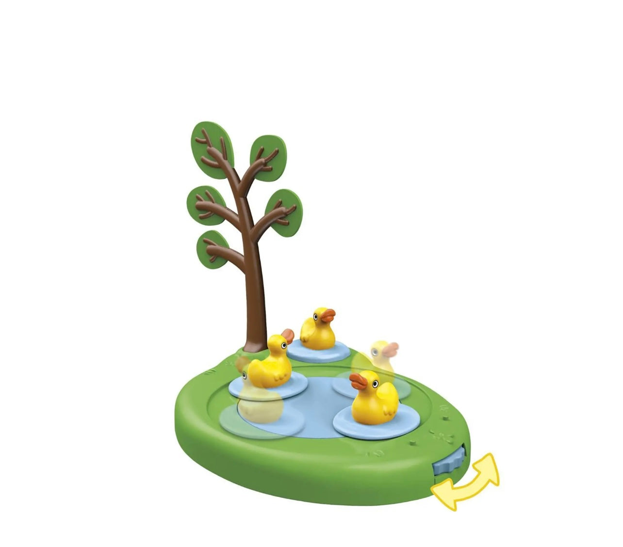 - Papere che Nuotano: Il laghetto delle papere, composto da due parti, presenta una rotella che permette ai bambini di far muovere le papere come se stessero nuotando.