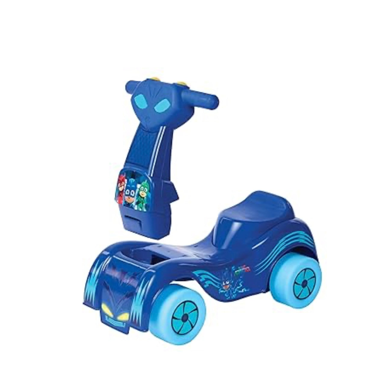 Diventa un piccolo supereroe con il veicolo cavalcabile PJ Masks Cat-Car! Ispirato alla serie animata "PJ Masks – Super Pigiamini", questo cavalcabile dal design accattivante riproduce le forme del veicolo di Gattoboy e include suoni realistici per vivere l’avventura. Con ampio sedile ergonomico, ruote larghe per maggiore stabilità e manubrio removibile, è perfetto per il divertimento dei più piccoli in sicurezza.