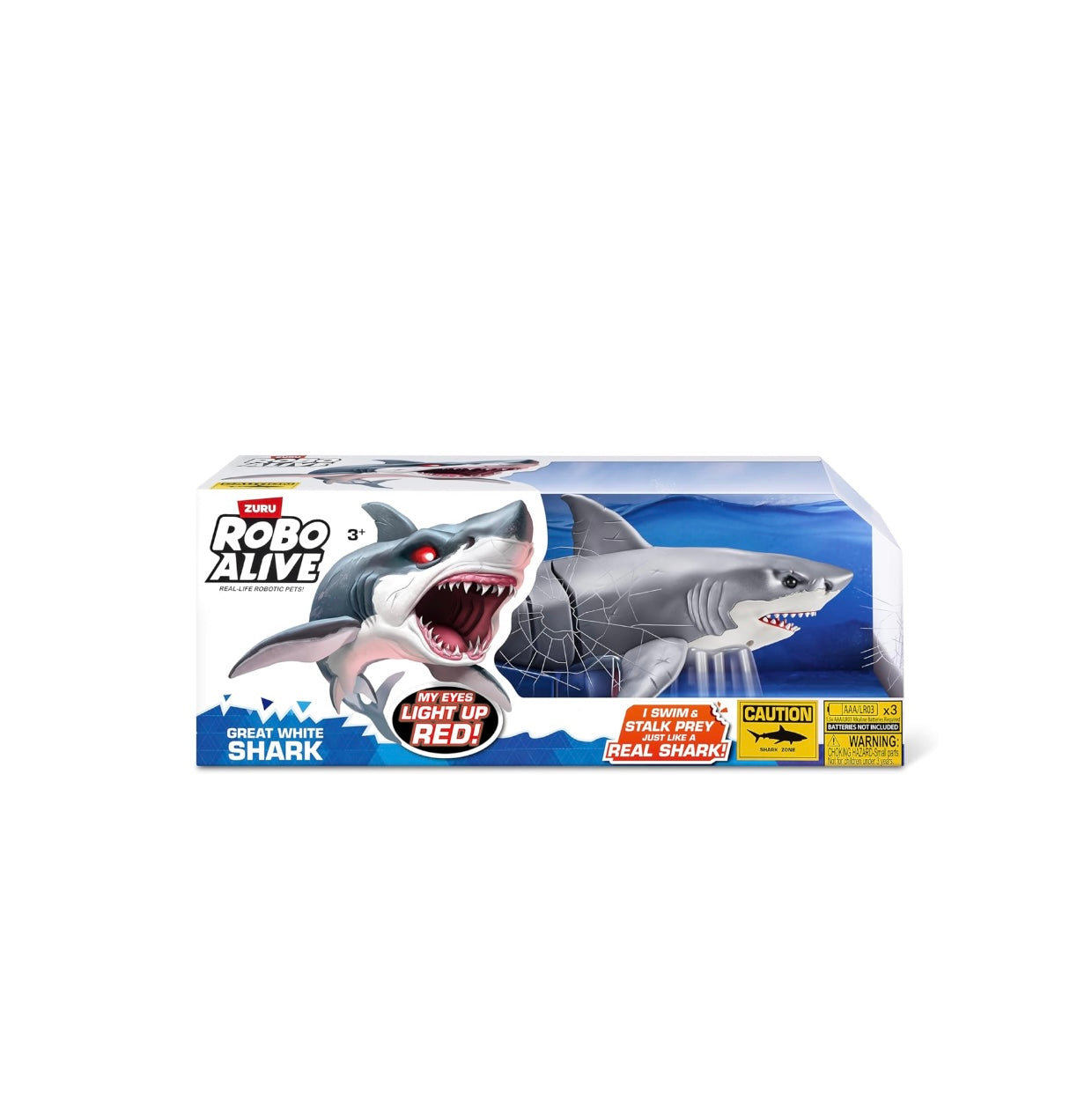 - Attivazione ad acqua: Guarda come il grande squalo bianco Robo Alive prende vita in acqua, grazie all’avanzata tecnologia con attivazione ad acqua di ZURU!