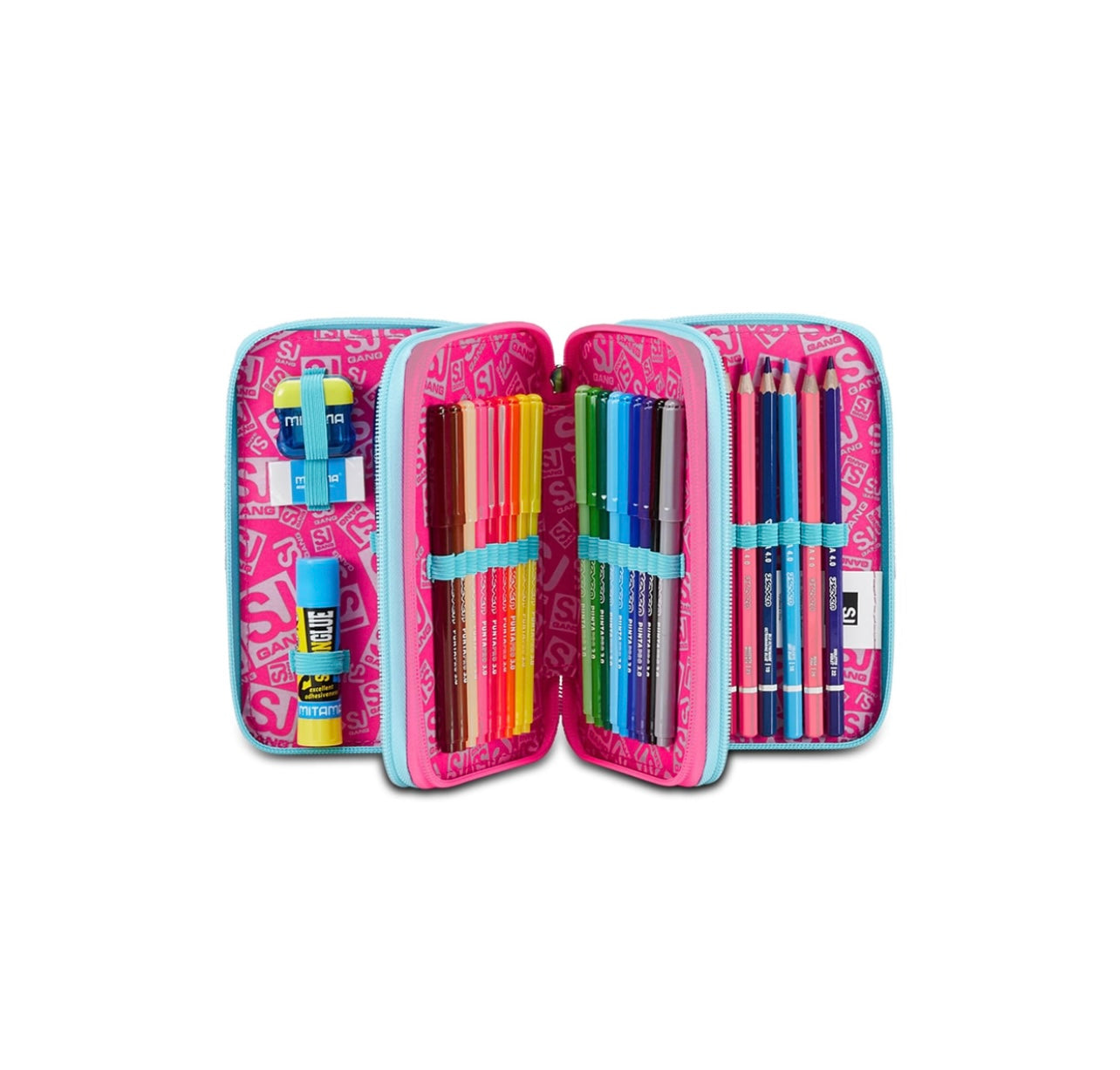 Praticità e Stile: Questo astuccio è non solo pratico ma anche stiloso, perfetto per essere abbinato a uno zaino o a un trolley della linea SJ Gang, creando un look coordinato e funzionale per la scuola. La struttura tripla consente una facile organizzazione degli strumenti scolastici, mentre la chiusura a zip mantiene tutto sicuro e accessibile.