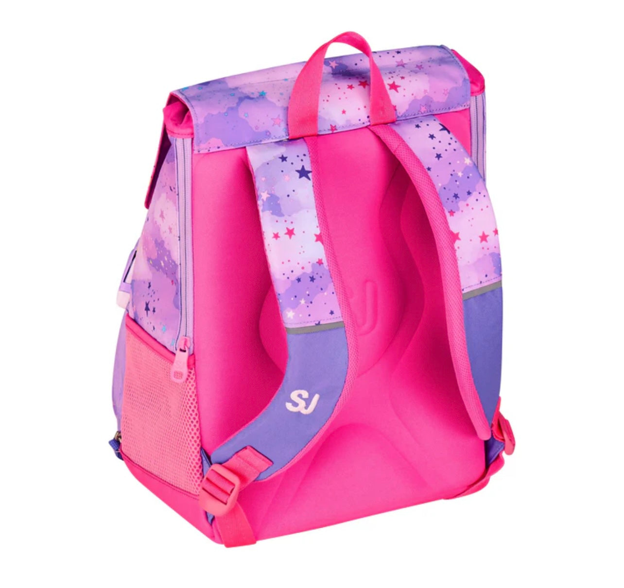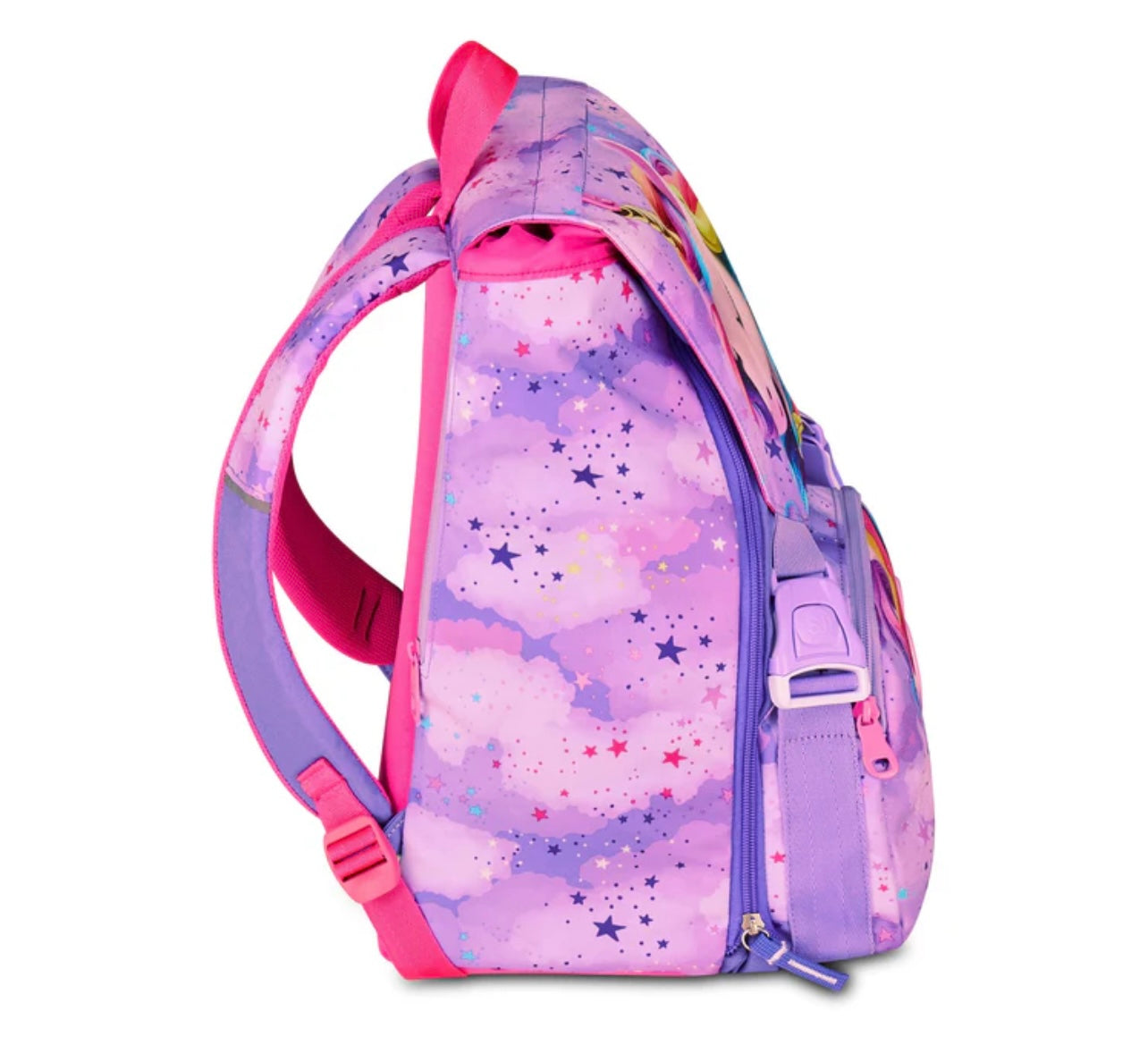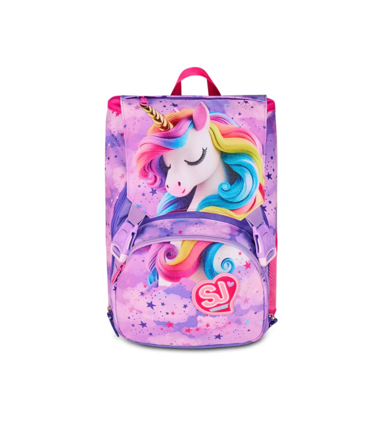Ciao! Sono il favoloso FABLE JOURNEY, lo zaino estensibile SJ GANG con finitura scintillante per andare a scuola e giocare! Apri le zip laterali e sfodera i MAXI INSERTI stampati per trasformarmi in un meraviglioso UNICORNO ALATO! Ho un doppio scomparto spazioso, di cui puoi aumentare facilmente la capienza tramite le zip laterali per poter accogliere e distribuire in modo ottimale libri, quaderni e tutto ciò che ti serve per la tua giornata, potendo sfruttare anche la tasca frontale. Inoltre, sono davvero comodo da indossare sulle spalle, grazie a schienale e spallacci confortevoli. In più, il fondo integrato mantiene la mia struttura inalterata, garantendo la stabilità del contenuto anche a pieno carico.