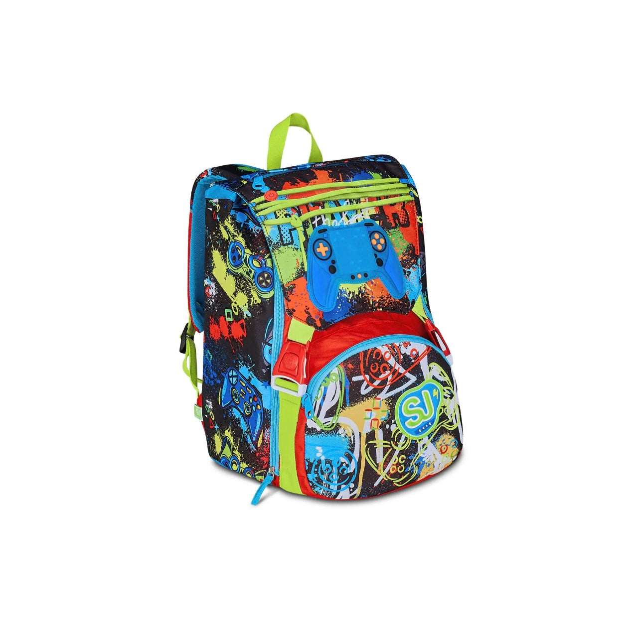 Ciao! Sono GAME-LED BOY, lo zaino estensibile SJ GANG per andare a scuola e giocare! Divertiti ad accendere il LED posizionato sulla pattina staccabile tramite il pulsante on/off, e ricaricalo attraverso l’usb quando vuoi. Ho un doppio scomparto spazioso, di cui puoi aumentare facilmente la capienza tramite le zip laterali per poter accogliere e distribuire in modo ottimale libri, quaderni e tutto ciò che ti serve per la tua giornata, potendo sfruttare anche la tasca frontale. Inoltre, sono davvero comodo da indossare sulle spalle, grazie a schienale e spallacci confortevoli. In più, il fondo integrato mantiene la mia struttura inalterata, garantendo la stabilità del contenuto anche a pieno carico.