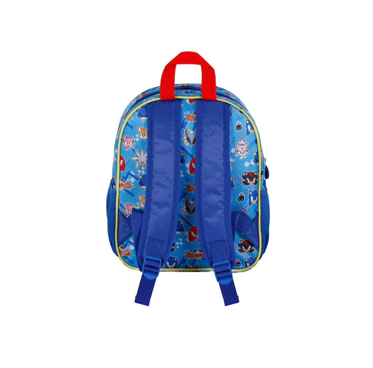 Zainetto 3D Piccolo Sonic Trio. Sonic. Zainetto prescolare con rilievo frontale 3D. Scomparto principale con cerniera e rivestimento interno. Due tasche laterali in rete.