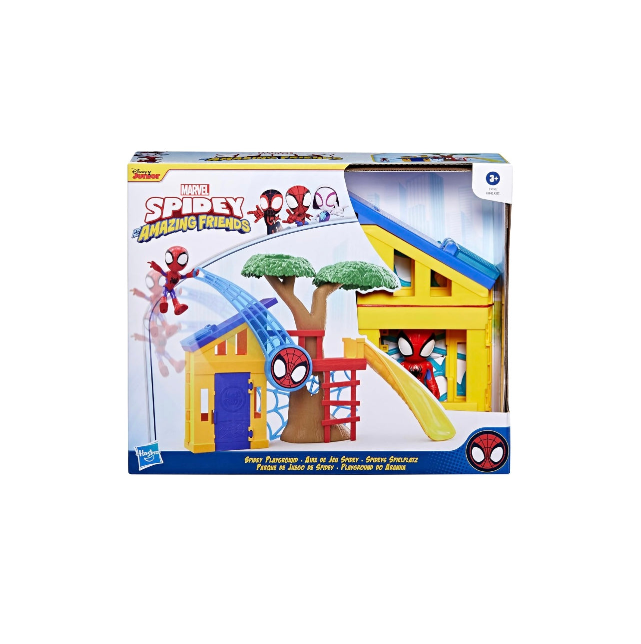 Il playset Il parco giochi di Spidey di Marvel Spidey and His Amazing Friends è un grande set giocattolo interattivo ispirato alla serie animata di successo di Disney Junior. Bambini e bambine dai 3 anni in su possono far finta di trovarsi nel fantastico parco giochi di Spidey grazie alle molteplici funzionalità offerte dal playset! Bambini e bambine in età prescolare vengono stimolati a usare la loro fervida immaginazione per inventare storie proprie o ricreare le proprie scene preferite del Team Spidey per non smettere più di giocare! Il playset contiene una action figure di Spidey in scala da 10 cm per un fantastico gioco ricco di azione e avventura (altre action figure vendute separatamente, secondo disponibilità). Copyright MARVEL. Tutti i marchi commerciali e i marchi registrati appartengono ai rispettivi titolari. Hasbro e tutti i marchi commerciali e i loghi correlati sono marchi commerciali di Hasbro, Inc.