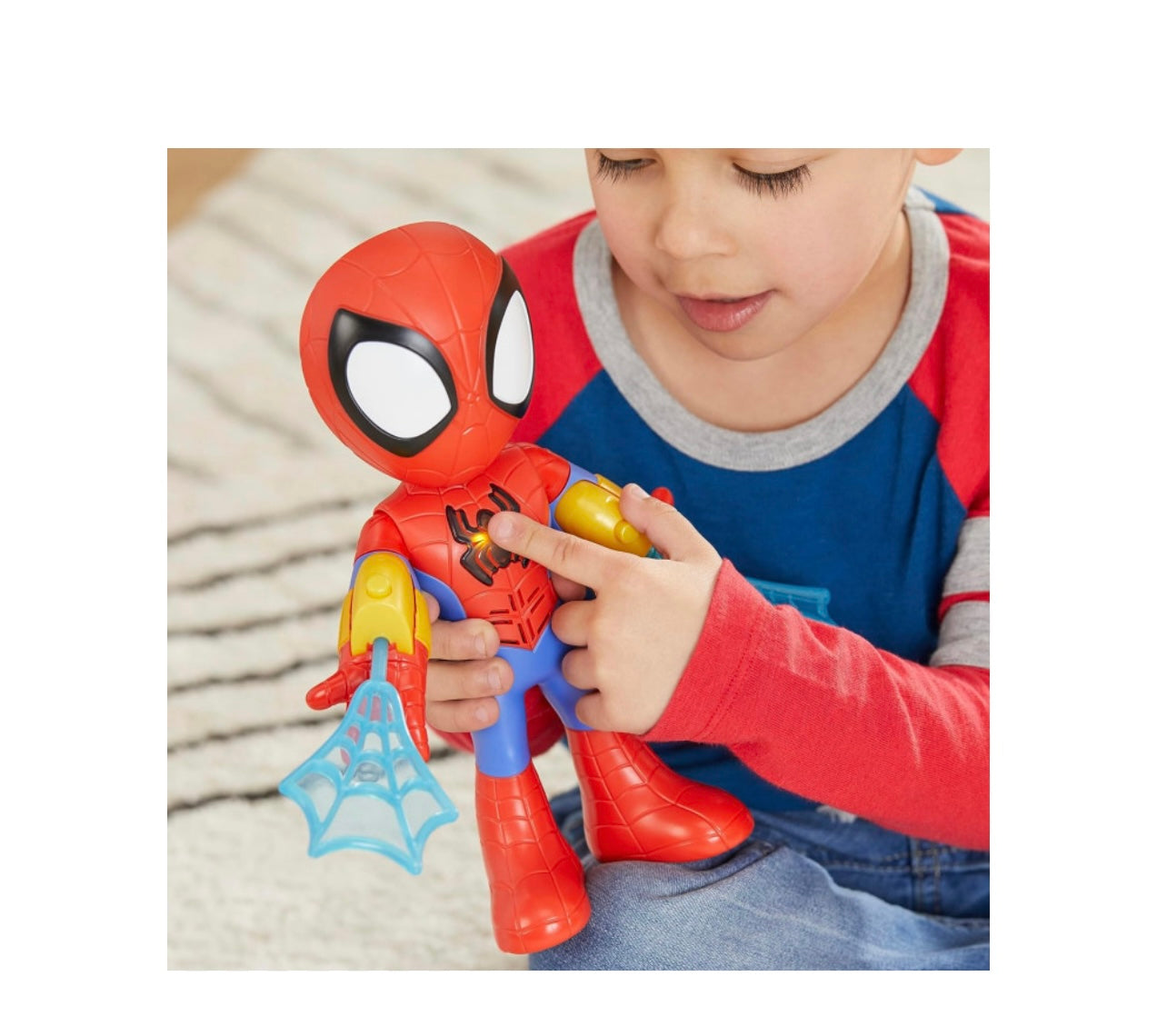 - Luci e rumori: se si preme il simbolo Spidey sul suo petto, si suona prima frasi inglesi e suoni noti della serie di successo Disney Junior e poi Spidey si illumina
