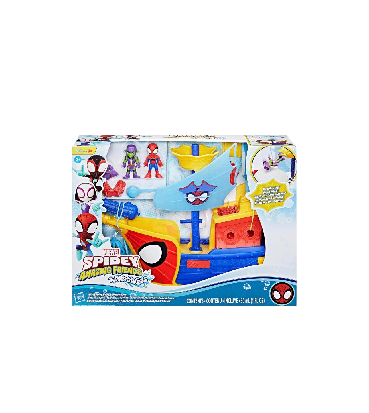 INCLUDE 2 ACTION FIGURE E ACCESSORI MARVEL: la nave pirata include action figure di Spidery e Green Goblin, 2 accessori per cappelli da pirata e 1 paio di stivali, ispirati agli episodi di Water-Webs della serie "Spidey e i suoi fantastici amici"