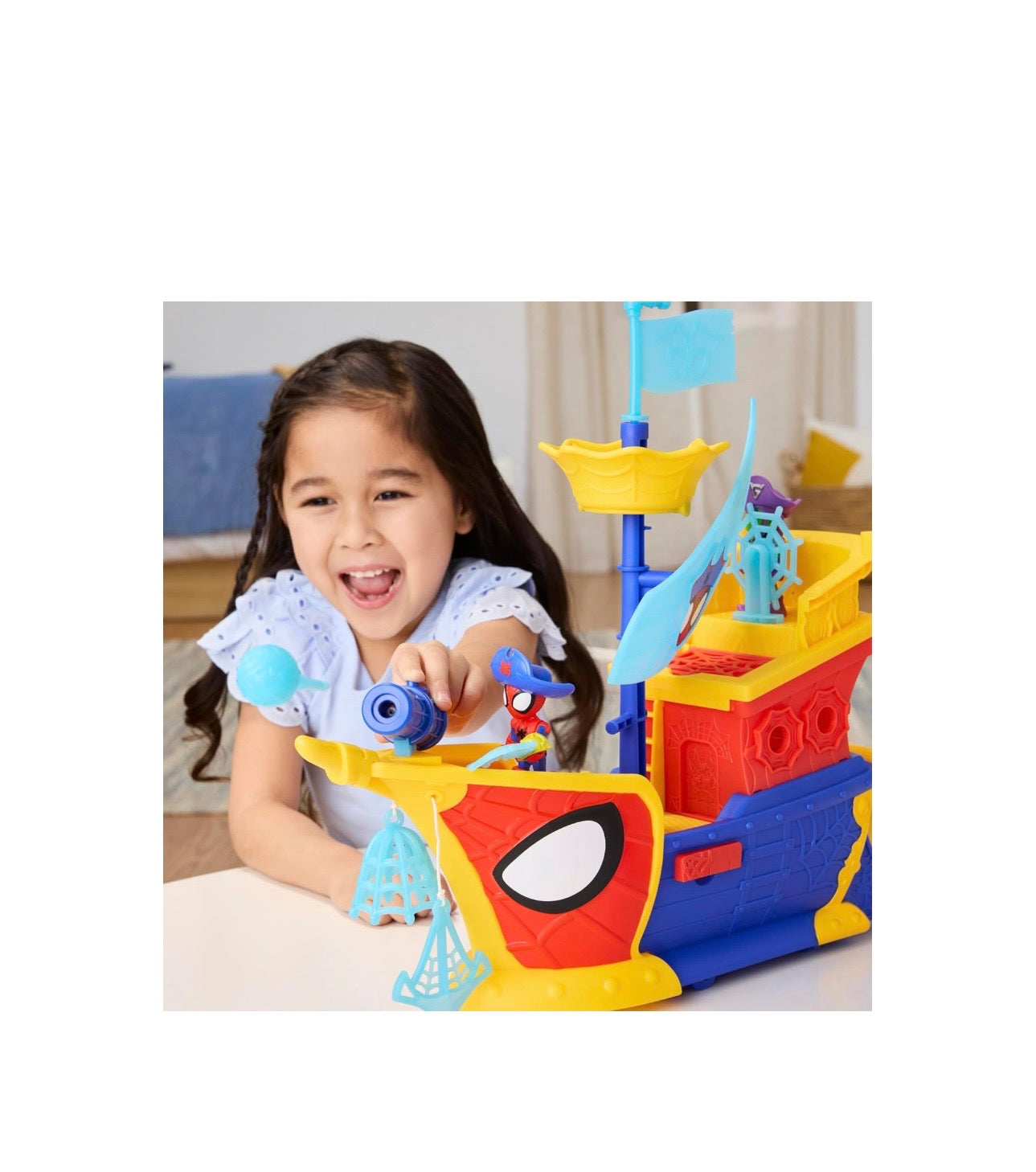 43,1CM PIRATES THEME SPIDEY PLAYSET: Ragazzi e ragazze adoreranno questa action figure e His Fantastic Friends e il set di giocattoli del veicolo, che include 2 action figure articolate, una nave giocattolo e 9 accessori